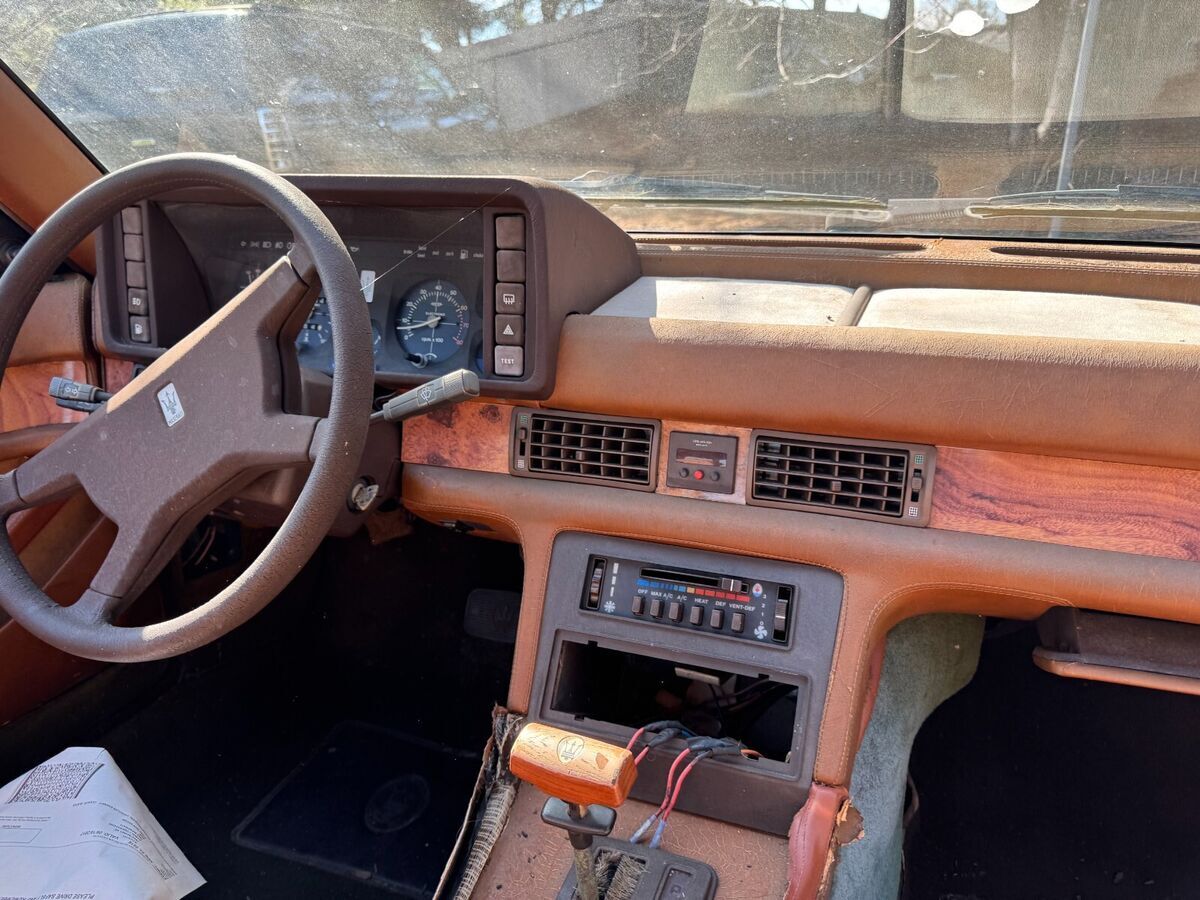 This is a used 1985 Masarati Biturbo. This is a complete car that started and ran (not well) 3 years ago. The engine ran but did not run well. Previous owner replaced timing belt and it missed when started afterwards. Transmission shiftes fine and everything on the car worked. Missing stereo and speakers. I have not been started the car in over 3 years. This car cannot be driven and will need to be trailered. The wheels are in decent condition (faded) and not damaged. The body has some rust. The interior has some tears in the seats but is complete. Dash and door panels are in very good condition.This comes with a clean title.Note: car has not been started in 3 years and is not road worthy. It is complete but requires it to be trailered.Clean title with 43331 miles