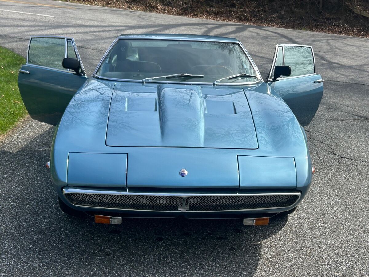 4,719cc DOHC V8 Engine 4 Weber Carburetors 330bhp at 5,500rpm 5-Speed Manual ZF Transmission Independent Front Suspension - Live Rear Axle 4-Wheel Disc Brakes *Desirable factory 5-speed ZF gearbox *US-market example *Era-evoking Giorgetto Giugiaro design -MASERATI GHIBLI- A strong contender for the "most handsome car of the 1960s" title, Maserati's Ghibli debuted in coupe form at the Turin Motor Show in November 1966. Styled at Carrozzeria Ghia by Giorgetto Giugiaro and named after a Sahara Desert wind, the Ghibli rivaled the Ferrari Daytona for straight-line performance - its top speed was close to 275km/h (170mph) - while beating it for price. More than 4.5m long and 1.8m wide, the Ghibli occupied an inordinate amount of space for a mere two-seater, but perhaps the most startling aspect of its appearance was the height, or rather the lack of it. Dry-sump lubrication enabled the engine to be mounted deep in the chassis, permitting a low bonnet line, while limited suspension travel ensured that the tires did not foul the wheel arches. The roofline fell away from the top of the steeply raked windscreen to the chopped-off tail, Giugiaro thus achieving a cabin lower than that of almost all the Ghibli's contemporaries, albeit one with restricted headroom for rear passengers. Like the contemporary Mexico 2+2, the Ghibli used a shortened version of the Quattroporte saloon's tubular steel chassis in its live rear axle form. In preference to the more complex suspension designs favored by its rivals, the Ghibli used leaf springs and a single locating arm, a much more easily maintained arrangement. The power unit was Maserati's powerful, four-cam, 90-degree V8, an engine derived from that of the 450S sports racer and first seen in road-going guise in the 5000GT. This was used in 4.7-liter form up to 1970 when it was superseded by the 4.9-liter SS version in order to meet ever more stringent emission laws. The gain in horsepower was minimal, but in either case performance was stunning, with 160km/h (100mph) attainable in under 16 seconds. This neck-snapping acceleration resulted from the V8's enormous torque, which made the Ghibli one of the most flexible and easy-to-drive GTs of its era. One of the most stunning sports cars ever made, the Ghibli was a worthy rival for the Ferrari Daytona and represents exceptional value for money today, just as it did over 50 years ago.