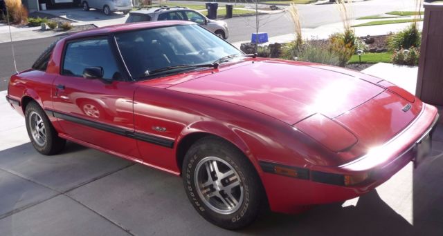 Wonderful red 1984 RX-7 5-speed GSL everything original, except the muffler and battery, only 43,774 original miles! Air conditioning and alarm system. Off-black (grey) velour interior with no rips or stains. Also includes sun roof, moon roof, rear window metal louvers, alarm system, and floor mats.