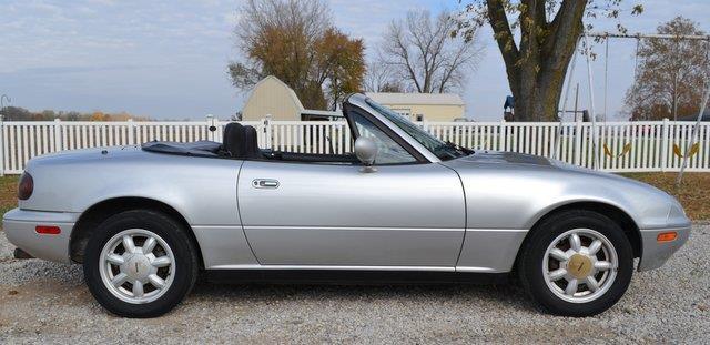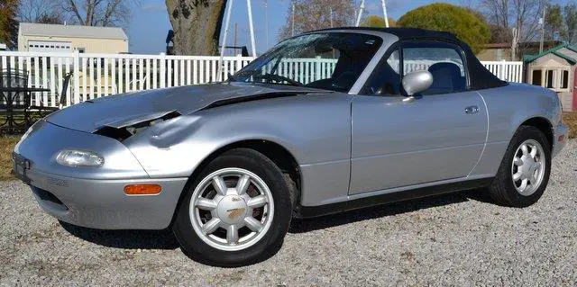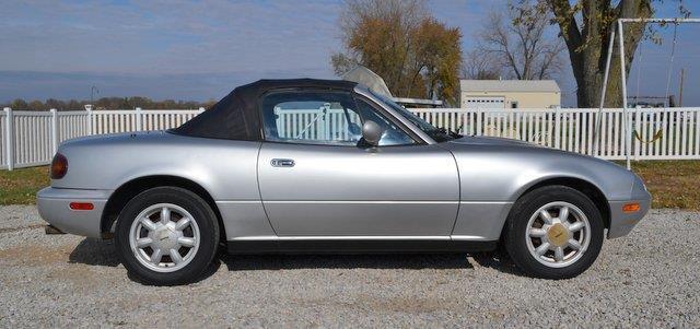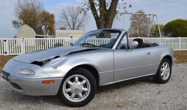 "TITLE INFORMATION" THIS IS AN INSURANCE COMPANY TOTAL LOSS AND WILL HAVE A GOOD REPAIRABLE "MISSOURI SALVAGE TITLE" IN MY NAME THAT WILL BE REASSIGNED TO YOU WITH A "BILL OF SALE". PLEASE CONTACT YOUR STATE IF YOU HAVE ANY QUESTIONS ABOUT "SALVAGE TITLE PROCESSING" IN YOUR STATE. THANK YOU. Please view all "80" pictures and please read my description, thank you. This 1991 Mazda MX-5 Base was totaled out by the previous owners Insurance Company(State F...arm)who valued this vehicle at $6000. before damage in consideration of exceptionally low miles & overall good condition. The damage was caused by hitting a deer and the damage is: Windshield, left park light lens, left head lamp assembly, hood and left front fender. No damage to radiator, core support or a/c condenser and blows cold air. No airbags deployed but light on dash will blink 4 times and can be easily corrected by checking on line as I did, I found it to be an age problem. No damage to frame or suspension and will drive great and go anywhere. The engine is a 1.6L 4 Cyl. that runs great with a 5-speed tranny that shifts smooth with no clutch slip or chatter and responds right off the floor as it should. You can see engine at idle in dash pic with no engine warning lights on and good oil pressure. The overall car is in good condition with one rust spot on left lower rear rocker panel that can be seen in pics. Convertible top is in the same condition as the entire car and boot fits good, "not a show car" and shows wear & tear but not bad for a vehicle that has reached "Antique Status" The interior is also in good condition, carpets look new and you will be very satisfied. Radio does not work and someone removed the antenna, not broke off, just unscrewed. Air blows cold and a very comfortable car to zoom around in, no odor from smoke or pets. Carfax reported a good history and a 2-Owner vehicle that will be available at no cost by clicking the Carfax logo or picking up in person. You are welcome to inspect this vehicle at my residence (please call first) thank you. I have been a Mo. Dealer for 43 years and at this point I only buy and sell easy Salvage Rebuilders that I acquire from Insurance Companies after the loss and pass the work on to my customer. This vehicle will also be for sale locally. No additional fees will be charged. You only pay what you bid, thank you. VEHICLE WILL RELIST IN 24hrs. IF NO $100. DEPOSIT OR CONTACT. ALSO BUYER WILL BE TURNED IN TO EBAY "RESOLUTION CENTER" AS A NON-PAYING BIDDER! Pay when you pick up(7-days). BUYER IS RESPONSIBLE FOR PICK UP OR MAKING SHIPPING ARRANGEMENTS. My location is: 313 Red School Rd. West Alton, Mo. 63386. Please read "Terms & Conditions" at bottom of listing concerning "PAYPAL FEE"? If you have any questions about this or any of my other auctions please feel free to contact me via e-mail at or you can call me at 636-323-4129. Thanks for your interest and I look forward to hearing from you, Don.