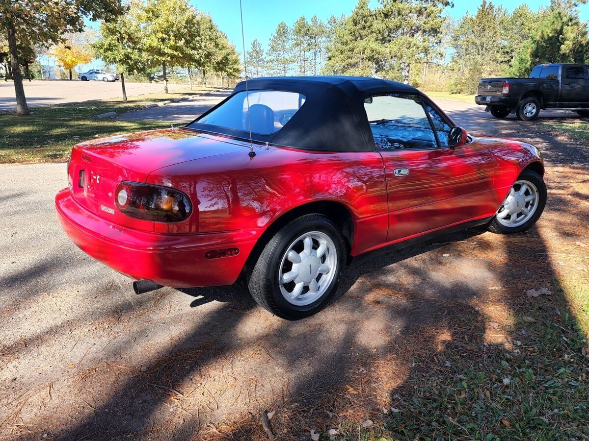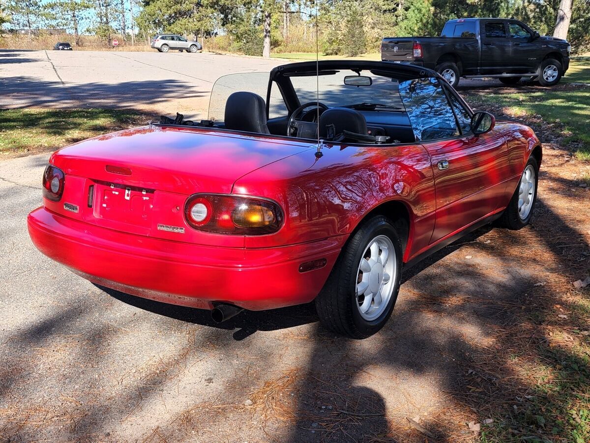 1990 Mazda MX-5 Miata Manual 1.6l 56k MilesNO TRADESFinished in Classic Red with black cloth interior with 5-Speed manual. Southern car that had a hard top on most of its lifePlease see photos for condition of the vehicle, we are able to take photos of anything else that may be needed.The car runs and drives just fine, no check engine lights, no leaks, no mechanical issues. The car is in good condition for its age, expect minor cosmetic blemishes. Car is priced fair. We do not have any service history on the vehicle as it was not provided to us when purchasedCar is located in Wausau, WI and is being sold through our dealership as we are a licensed WI dealer. We have done a full inspection on the vehicle. If purchased by a WI resident we will have to charge tax, title and license fees. We have not driven the car in the snow/salt under our ownership, nor do we do that for any of our cars.We are able to ship anywhere in the USA, we will cover 50% of the shipping costs to the 48 states (if using our broker) for the vehicle on our end per this special promotion we are currently running.