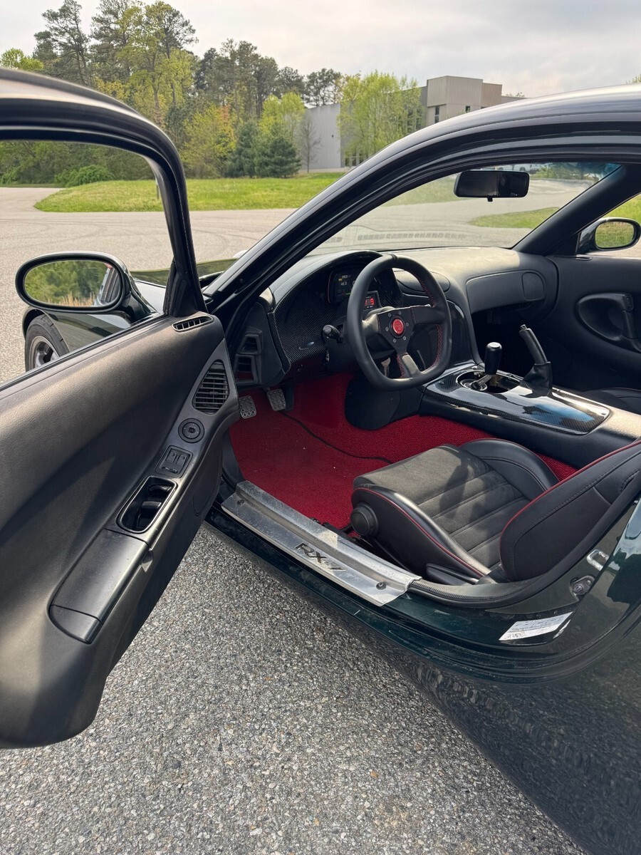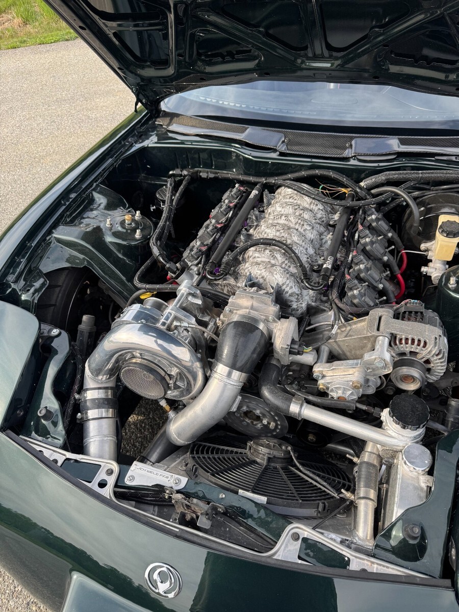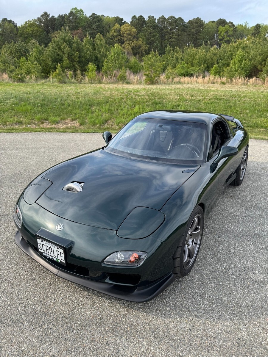 Comprehensive Restoration completed last year. 250 miles on the build.Engine:Refreshed 6.2L LSA Rotating Assembly/Block243 Heads with LS6 Intake ManifoldYSI A&A Corvette Supercharger W/ 8 Rib DriveFT550 W/ Engine Harness865WHP on Hub DynoID1700 InjectorsLittle john motorsports SpecBTR Valve spring/retainer setCustom Radiator, intercooler, piping set design for chassis and YSi.8-4-1 Custom with Titanium Rear sectionTransmission/Drivetrain:T56 MagnumQuick Time SFI Bell HousingMcleod Twin Disk ClutchAluminum DriveshaftFord 8.8 IRS W/ 3.55 GearsRonin Grande Axle UpgradeBrakes/Suspension:Ohlins CoiloversWilwood Front BrakesSakebomb Garage Rear BrakesFull SuperPro Poly Bushing ReplacementNew Pillow Balls, Tie Rod Ends, EtcBody:OEM 99 Spec front bumper with OEM 99 spec turn signal lights OEM 99 spec lip with under trayOEM 99 spec rear lights, with OEM new center brake lightOEM Full light replacement, rear lights, marker lights, ALL lights are OEM and purchased new from mazda.Feed Rear wingShine Auto rear diffuserOEM mud guardsCustom painted Audi Exclusive GreenInterior:Red CarpetBlack door panelsCenter console carbon panels with custom instrument cluster holderMiata ND Recaro Seats(only set to be put in an rx7)Custom behind seats roll bar painted chassis color