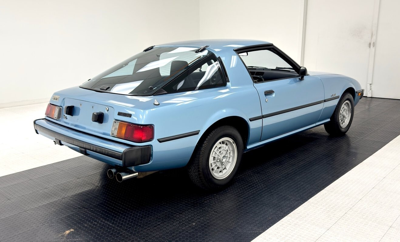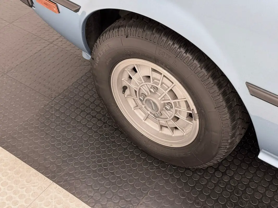 Sixteen colors were available in the U.S. market for Rx-7's in 1980, and this one wears a single stage application of Stardust Blue Metallic, paint code U2 for those keeping score. The somewhat revolutionary shape of the RX looks great in any color and especially light blue, where the beginnings of a wedge shape finishing with a descending hatchback behind a straight C-pillar, and above narrow fenders. The windshield rakes back dramatically thus keeping overall height low, along with the center of gravity. Hidden headlights are augmented here by added fog lights while the tail light hug the back corners, split wide outside the license plate box and underscored by a body colored bumper with black trim in a relatively early example of monochromatic design. 13-inch wheels carry 185/70R13 tires, visually enhanced by the black molding that runs the midline of the car at a time when side molding was fairly standard. Our scan of the exterior yielded no notes regarding imperfections.