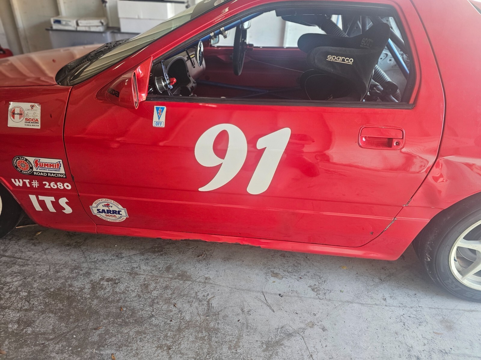 For Sale: SCCA ITS Mazda RX-7 Racecar ###This car was built from a straight, rust-free 1989 Mazda RX-7 FC shell to meet SCCA ITS specifications. I purchased the car from the builder, Scott Richards, who collaborated with Steve Eckerich, a leading expert on these race cars. After the purchase, the car was professionally maintained by Atlanta Speedwerks. It has a SCCA logbook documenting 10 races and received an SCCA Annual Tech inspection in March 2023. My personal best lap time was 1:45.357 at Road Atlanta in November 2022. This car is race ready and a fantastic value for HPDE and/or SCCA wheel-to-wheel racing.This car is NOT STREET LEGAL. It is a fully prepped race car. It will be sold with a Bill of Sale and SCCA Logbook.## Engine ##- Iannetti Apex Seals- Motec M4 ECU (tuning computer included)- New Double Pass Oil Cooler with Custom Fittings and Hoses- Reconditioned Stock Fuel TankSeller's description- New Fuel Pumps and Pressure Regulator, Spark Plugs- Blueprint Injectors- Replaced Engine Coils, Rebuilt Alternator## Transmission, Rear-End ##- Fresh Transmission Rebuild (one race) with Mazda Motorsports gear set- 5:12 Rear End (custom for racing, difficult to find)## Brakes ##- Rebuilt Front and Rear Calipers- Tilton Bias Valve## Features ##- SCCA Logbook- Current Schroth 6 point harness- Fire Suppression System- Custom Front Splitter- DEI Titanium Exhaust Wrap- Kool Mat Floor Insulation- Afterburner FIA Rain Light- New Front Wheel Bearings### Spares and Consumables/ Negotiable ### - New Hoosier Dry Tires (1 set)- 12 Wheels- Two-Stroke Racing Oil- Spare Transmission- Headlights x 4- Front Bumper- Taillights- Several buckets of miscellaneous RX-7 parts- Spare Transmission- Front Spindles- New Front Rotors, 2 Sets- Front and Rear Brake Calipers (used, not rebuilt) - 2 Sets- New Hawk Racing Front Brake Pads (2 sets)- New Hawk Racing Rear Brake Pads (2 sets)- Used Carbotech Front Brake Pads (multiple sets)- Multiple Sets Rear Brake Pads (Used Carbotech)- Several buckets of miscellaneous RX-7 parts- Factory Service Manual (2)### Available/Negotiable ###- New MyLaps Direct Wire Transponder with Lifetime Subscription