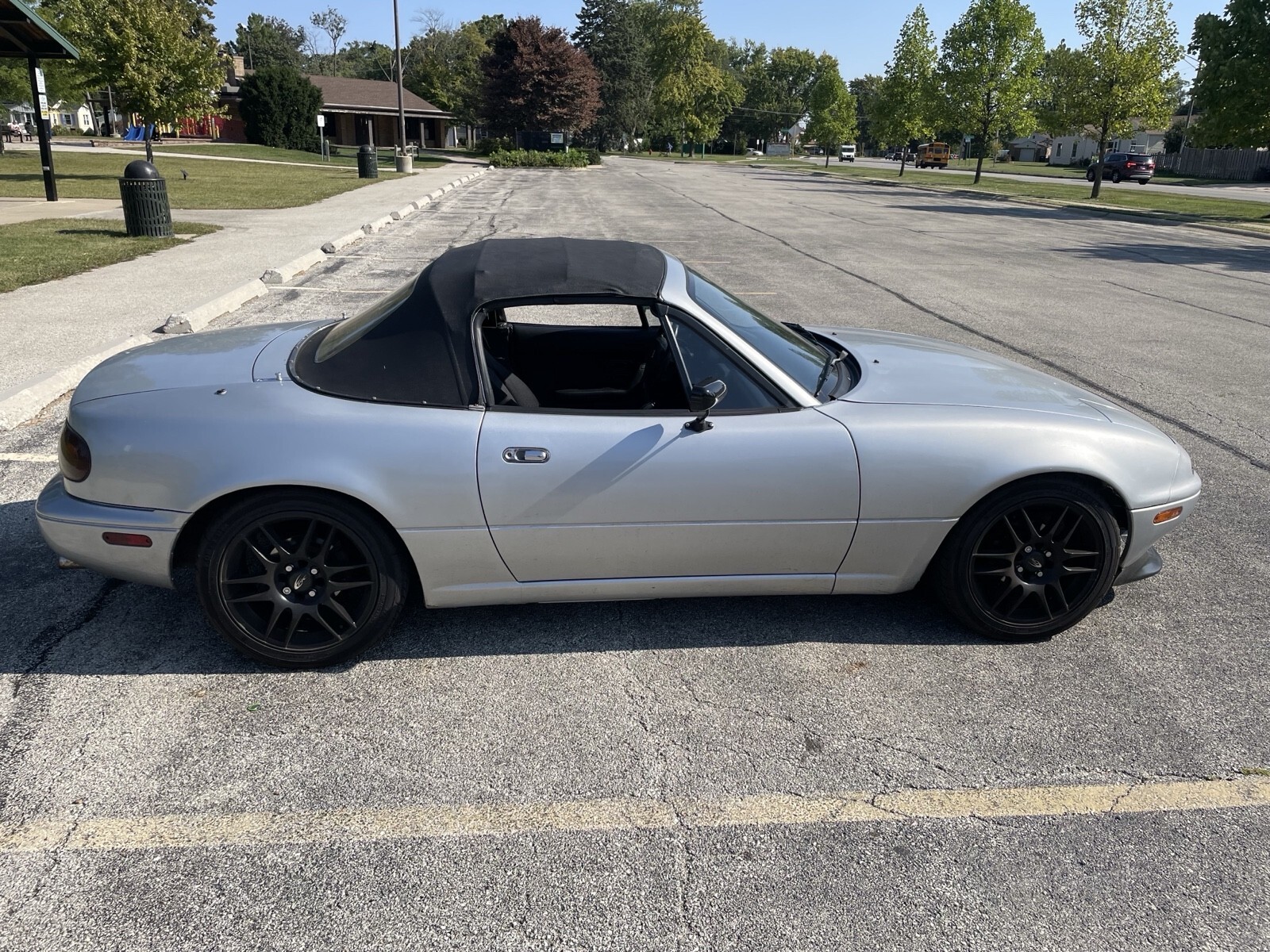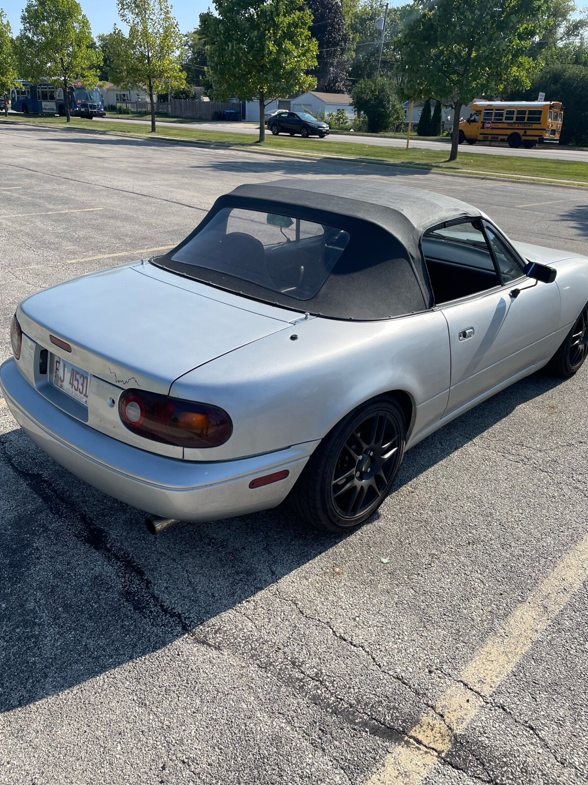 1990 Mazda MX-5. 1.6 engine 5 speed transmission 166935 miles Front lip. Lowering coilovers. New tires. New mirrors. New radio and speakers in doors and headrests. Short throw shifter with new shift boot and cover. WLS differential. LED headlights. Smoked front marker lights. No tears in top. New front calipers. New rotors and pads all around. New spark plugs. Fresh oil change. No issues except reverse lights don’t work; have not checked sensor. Does not burn oil. Heat works. Interior and exterior in great shape. Small ding on drivers door by hinge. Small tear in driver’s seat. Great driving car. Took a 10 hour trip one way to Tail of the Dragon in August. Drove the Tail 4 times it handles amazing. Reliable, fun car and only $30 to fill up. Never had any issues with it. Haven’t looked into reverse lights yet; probably the sensor. Everything works and functions great. New Forceum Hena 105/45R16 tires all around. Asking $6500. Only selling because I’m looking at another Miata. May consider trades for a Miata if it catches my eye. This is not a project car it’s ready to drive daily or at the track