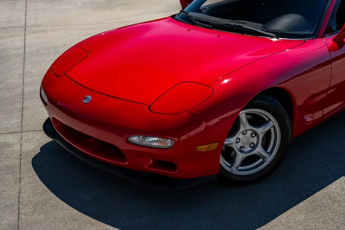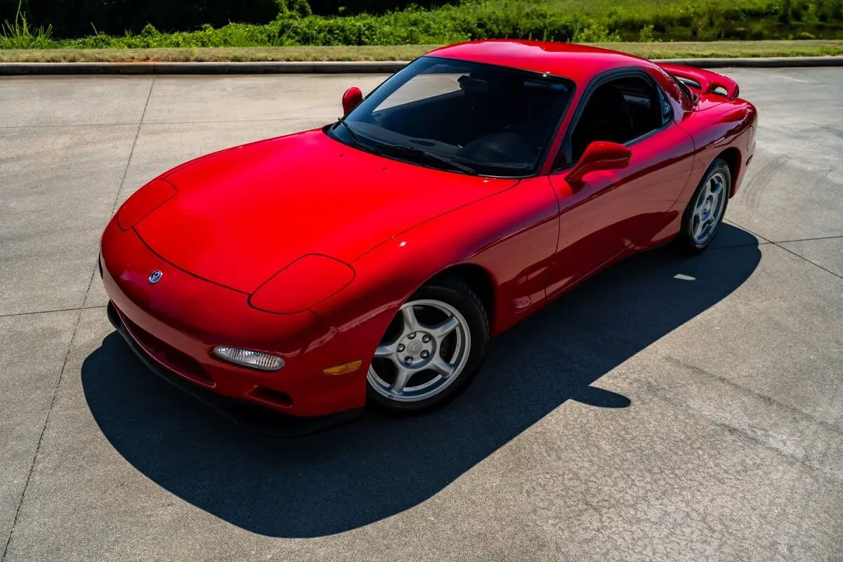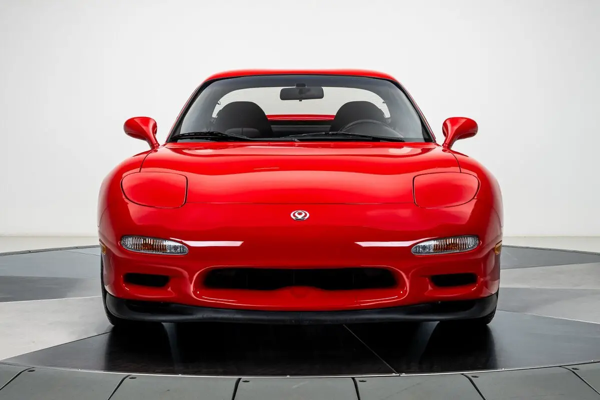 This 1993 Mazda RX-7 R1 is a true time capsule showing just 5,903 original miles, one of only 1,177 finished in factory Vintage Red and owned by only two collectors since new. Offered for one year only, the R1 package was the most focused and track-ready variant of the FD3S chassis, featuring firmer suspension, dual oil coolers, front and rear strut tower braces, and unique aero components including a front air dam and rear wing. This example remains in mint, showroom-level condition throughout. The paint retains its factory gloss and depth, the bodywork is laser-straight, and the car still wears its original 16-inch wheels wrapped in 1992-date-coded Bridgestone Expedia S-02 tires that show no signs of dry-rot...further proof of long-term, climate-controlled storage. Under the hood, the 13B-REW 1.3-liter two-rotor engine with sequential twin turbochargers delivers 255 horsepower and 217 lb-ft of torque through a 5-speed manual gearbox. In its day, the RX-7 R1 could out-accelerate a Ferrari 348 and stop shorter as well, earning it praise as a giant-killer among '90s performance icons. The interior is equally well preserved, with seats, plastics, and trim showing virtually no wear and offering a clean, period-correct feel throughout. This R1 represents a rare opportunity to acquire one of the best-preserved, lowest-mile FD RX-7s in existence. As values on Japanese performance legends continue to climb, this FD is not only an outstanding collector-grade car but also a smart investment in a rapidly appreciating market.
