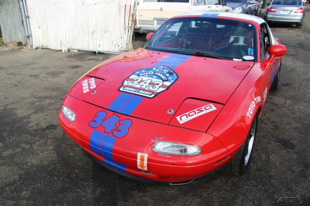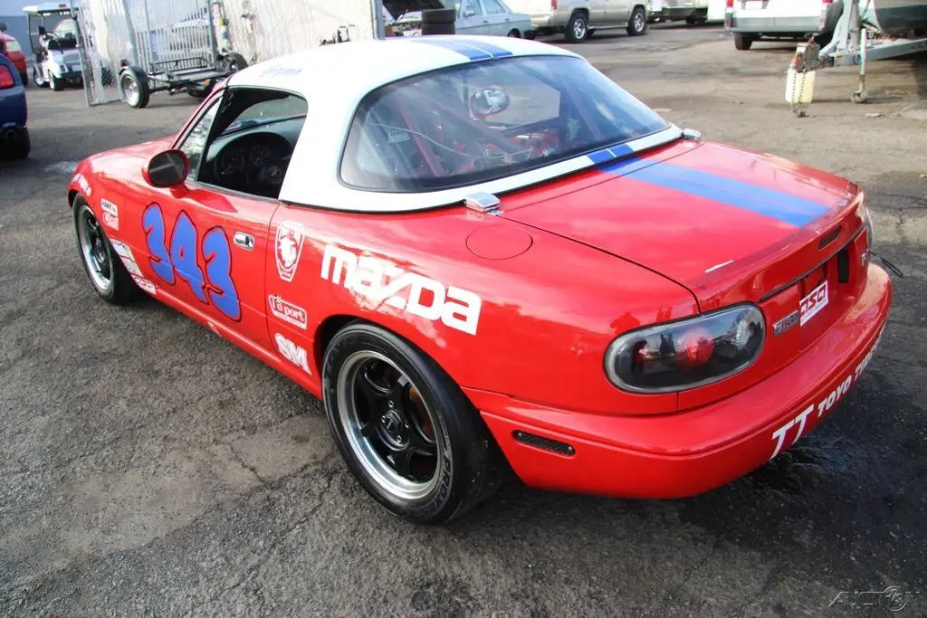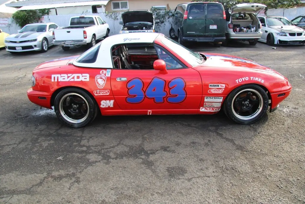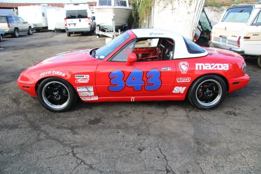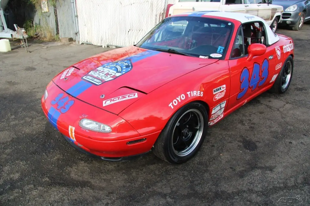 This 1994 Mazda Miata was transformed to compete in the NASA (National Auto Sport Association) Spec Miata category. The roll cage is part of the safety equipment required to run in this category. The interior has been fully stripped and converted to become a true racing vehicle.