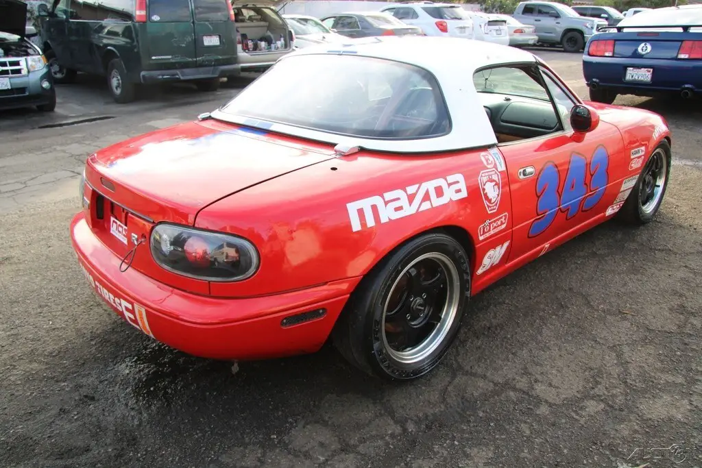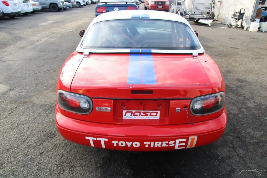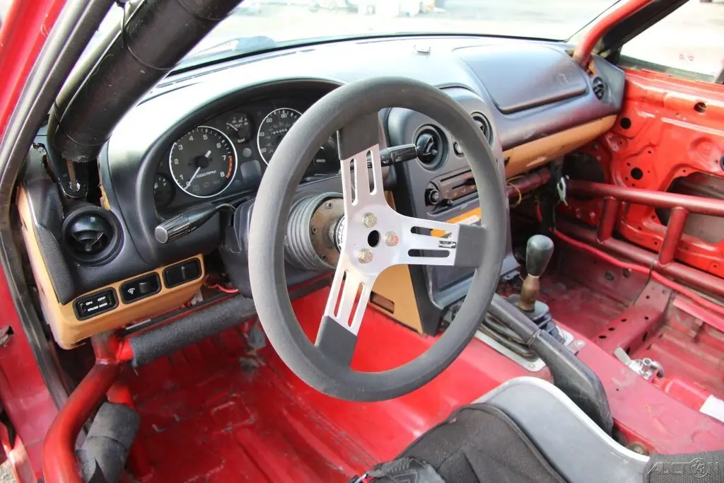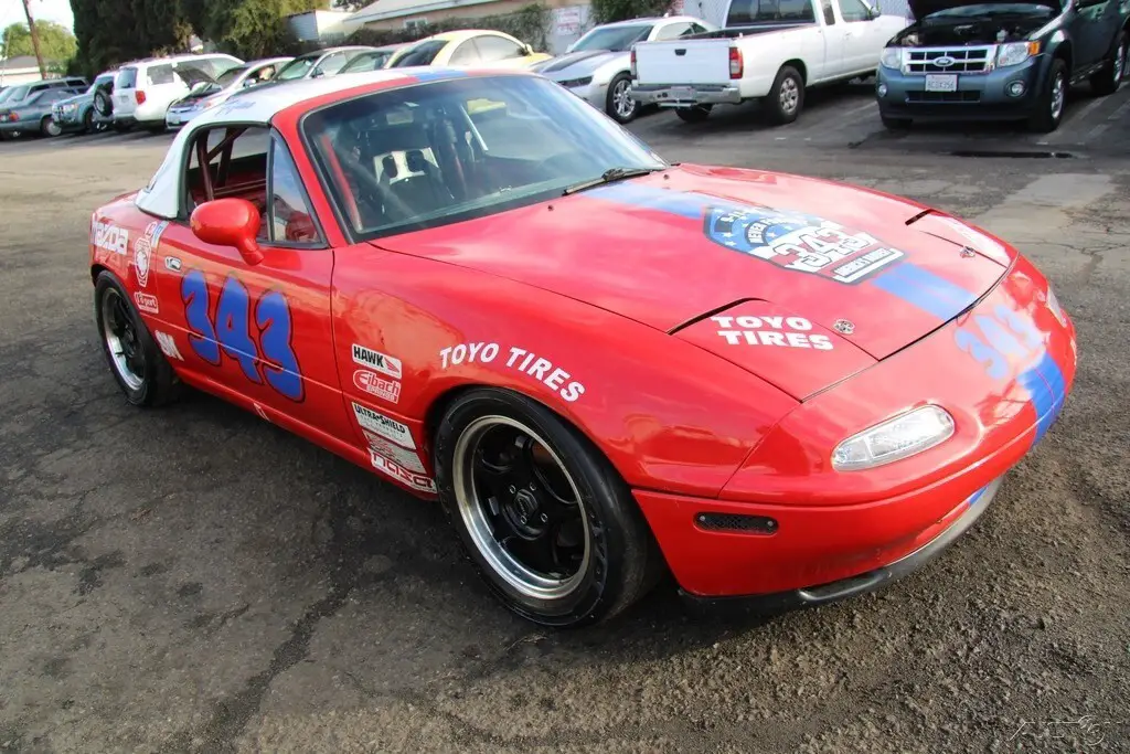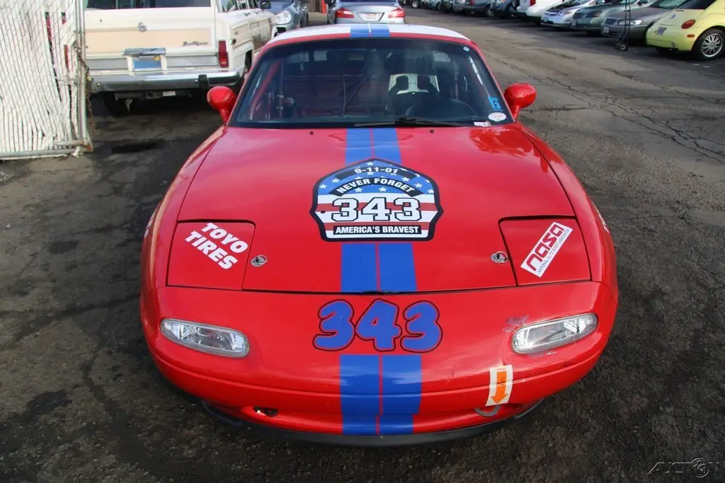 This 1994 Mazda Miata was transformed to compete in the NASA (National Auto Sport Association) Spec Miata category. The roll cage is part of the safety equipment required to run in this category. The interior has been fully stripped and converted to become a true racing vehicle.