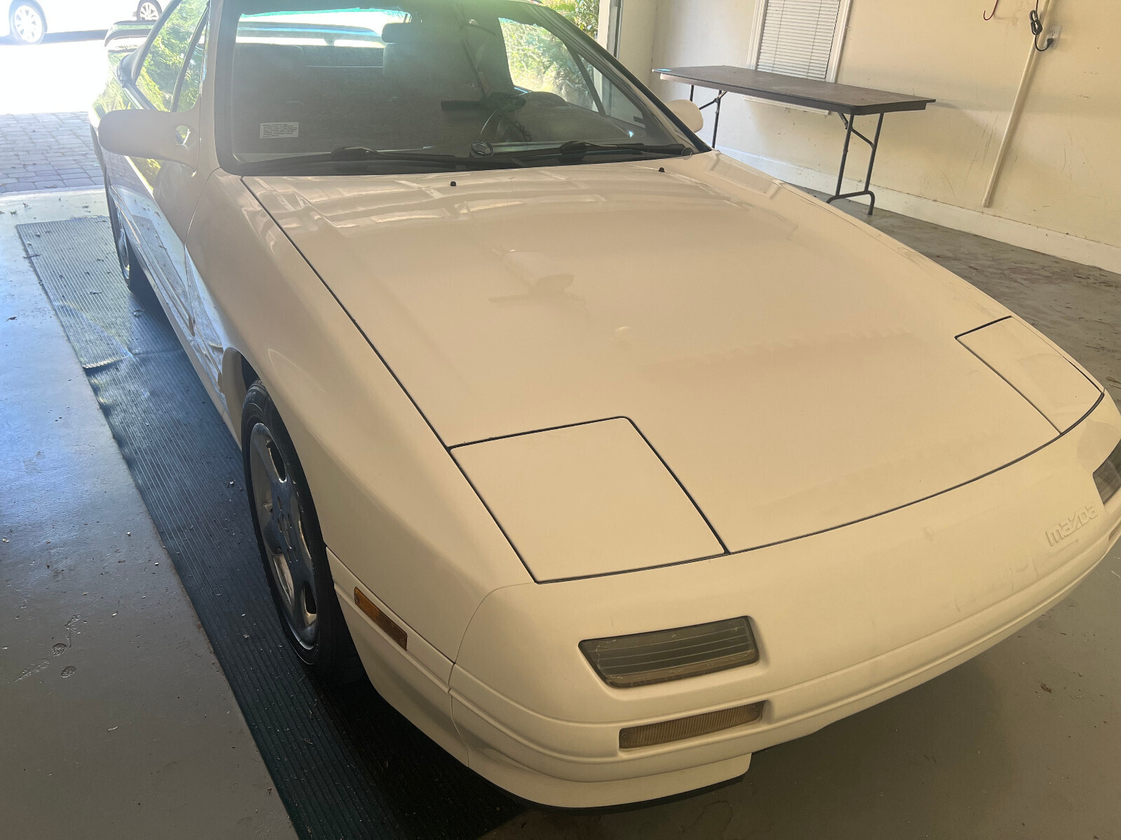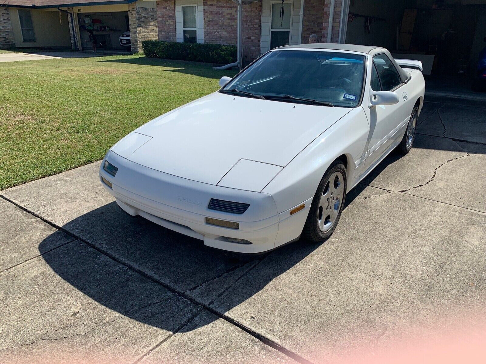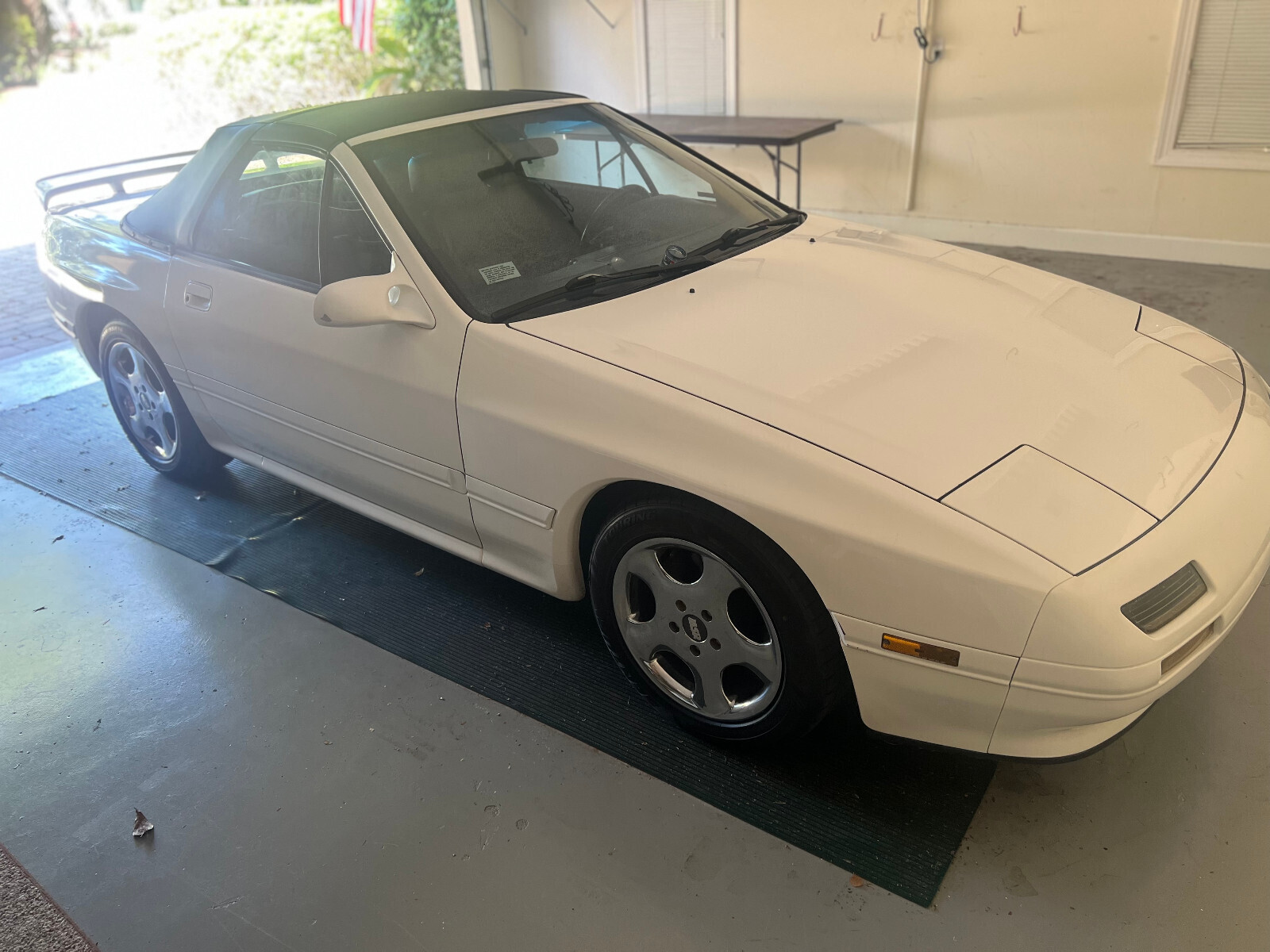 1991 Mazda RX7 Convertible, 49K Original Miles, Excellent Condition, Loaded, White Exterior, Blue Leather Interior, Black Convertible Top with Glass Rear Window and Rear Window Defroster, Cold AC, Dual Front Air Bags, Power Windows, Tilt Wheel, Cruise Control, Original AM/FM/CD Stereo, Built-in Equalizer, Stereo Headrest Speakers, Blue Matching - Tonneau Convertible Top Cover, EMC Custom Wheels & New Tires.