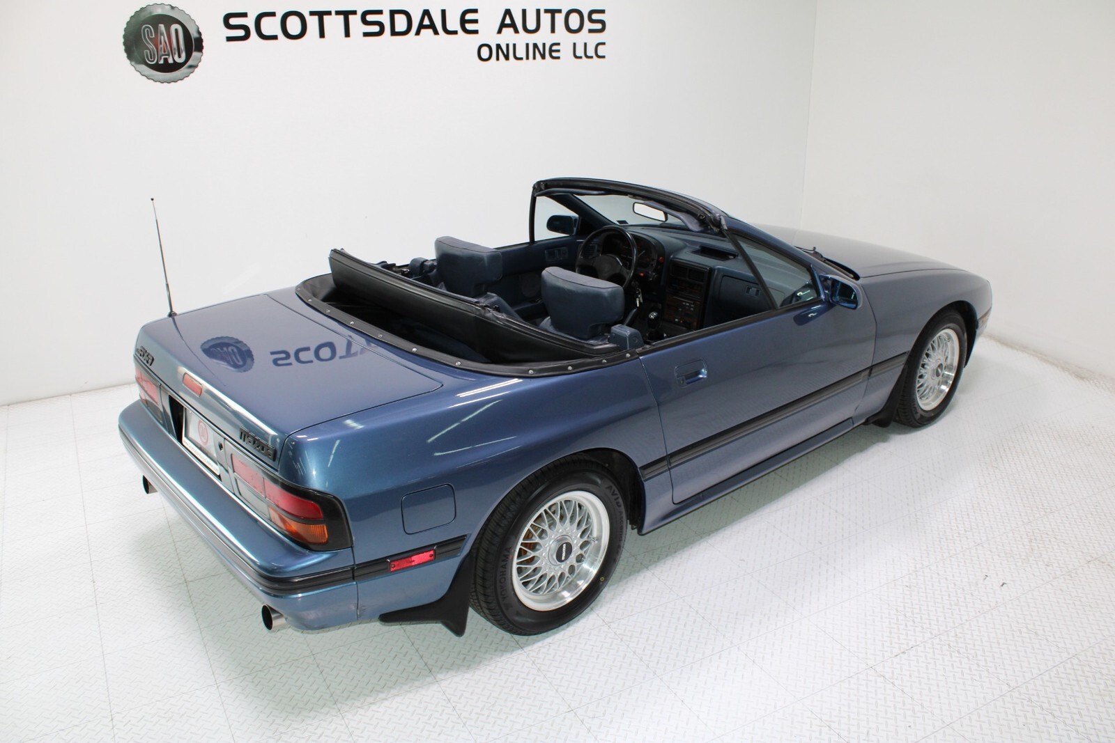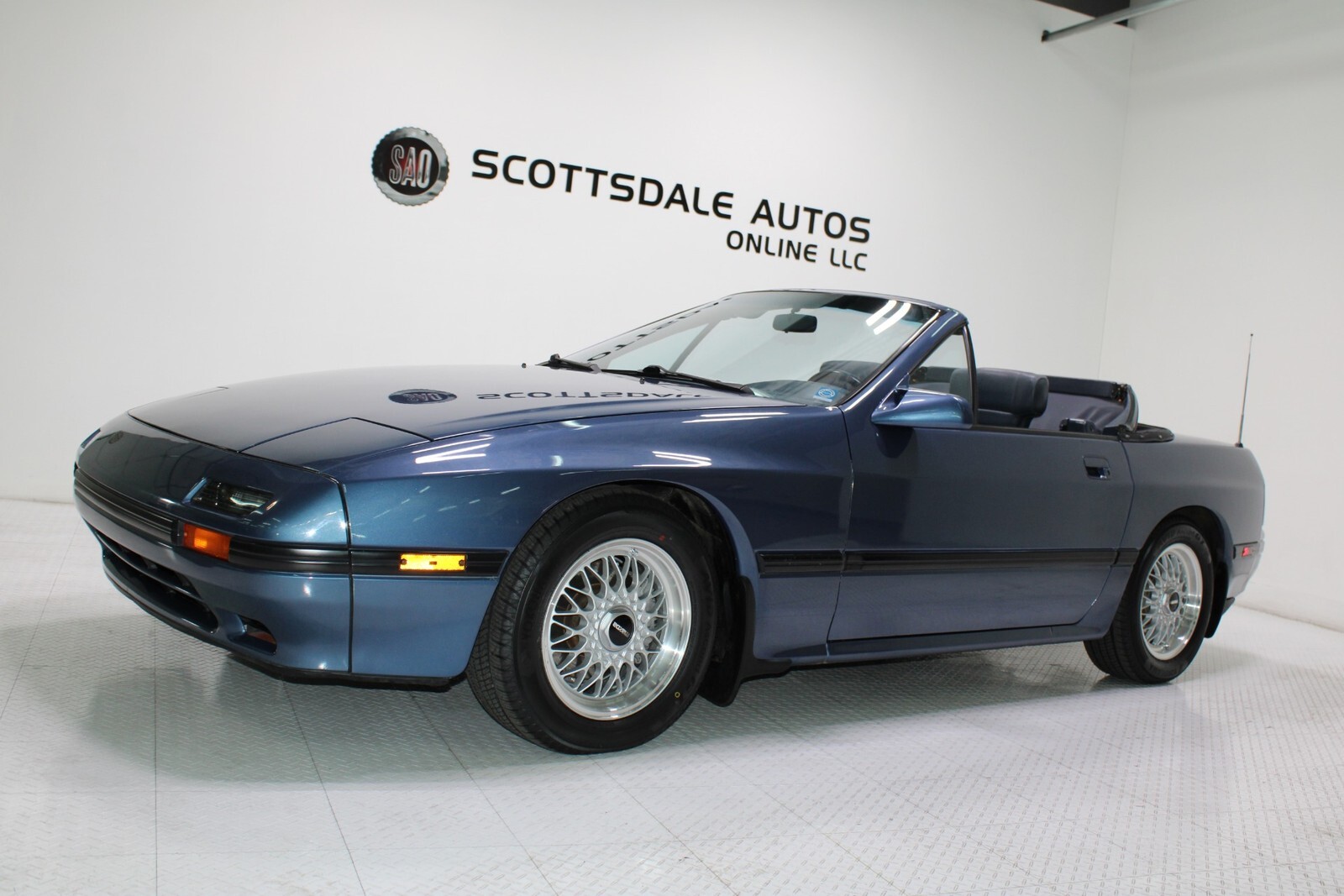 Experience the thrill of driving with this classic 1988 Mazda RX-7 Base Convertible, a true icon in automotive history. This timeless beauty is dressed in an eye-catching Sapphire Blue Metallic finish that gleams under the sun, making it impossible to go unnoticed. The sleek lines and aerodynamic design capture the essence of sporty elegance, while its convertible body type promises endless adventures on open roads with the wind in your hair.