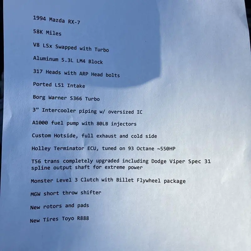 MGM Classic Cars 150 S. Church St, Addison, IL 60101 Phone: 847-848-1850 1994 Mazda RX-7 2dr Coupe Mazda RX-7 FD3 Coupe LSX V8 Swap TURBO 6-Speed Pro Built 550+HP! Must See!!!!!!!