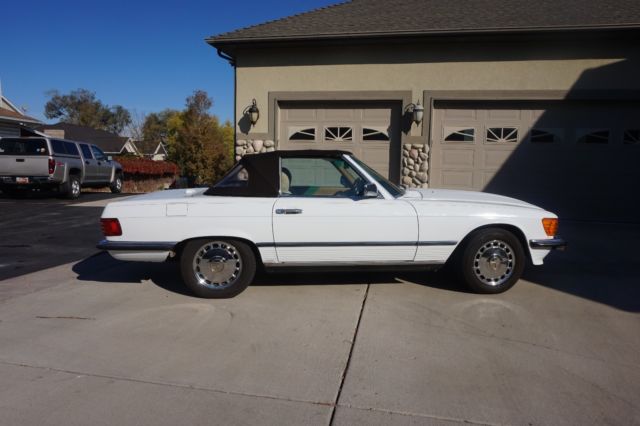 This distinctive car has had only two owners and has been my wife's light duty "around town car" for the past 10 years. I am fastidious about by vehicles and have done the majority of the maintenance and updates during our ownership so I can tell a buyer first hand what has been done to keep this classic in outstanding mechanical and cosmetic condition for its age. However, it is 30 years old and is a weekly driver and has the expected minimal blemishes and fading for a vehicle of this age. Paint was redone some years before my ownership and was a premium job at the time. I was led to believe this was a "widow's car" before we aquired it and had sat in a garage for a number of years in Colorado Springs CO before being sold out of a luxury car dealership in Scottsdale AZ This "European Edition" has several notable features that make it much more economical and attractive than the comparable 560 SL that was imported to the United States. We bought the car with 82 K miles and it now has a few miles over 115 K. It has been driven in Salt Lake City during nice weather and always garaged.