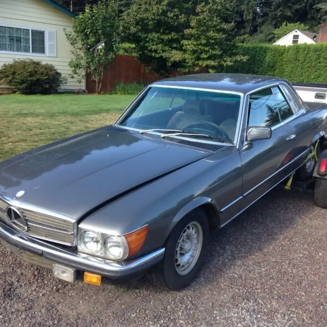 This 1981 Mercedes 280SLC is a blast to drive. DOES NOT come with Euro bumpers or headlights. Comes with standard bumpers properly installed. Euro parts swapped if wanted, extra. No smog equipment, no A/C, no power windows, no passenger mirror. This is an ultra light model. The last year made. Much lighter than a standard SLC. Starts right up and runs good. Brakes, shocks, transmission, steering all work great. Runs and drives fine like it is. Has minor rust on the lower bumper support that is easily fixed or replaced. NO NEED though. Not easily seen or structural, is cosmetic at best. Paint is presentable with chips and scratches.. Make this a tribute Rally Coupe???