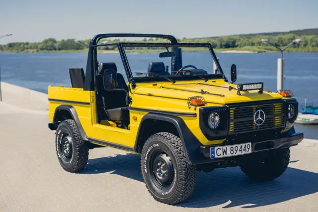 Spectacular Mercedes GD 240 CABRIO yellow for sale. The car is fully restored, in perfect conditions both mechanically and aesthetically. Originally from the Danish army, it was restored two years ago in Poland. It's a fun driving car whith a 4 cylinders diesel engine. It´s perfect with 83.000 km at the moment. VIN: WDB46131017049064