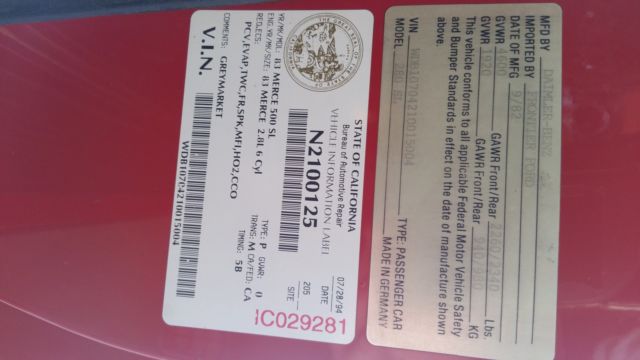 For sale 1983 MERCEDES BENZ SL 280 5 SPEED MANUALEUROPEAN MODELEUROPEAN HEADLIGHTS+USA HEADLIGHTSPERFECT CONDITIONSOUTHERN CAR68889 MILESSYNTHETIC OILALWAYS GARAGEDHARD TOP + SOFT TOP IN PERFECT CONDITIONVERY RAREVIN #WDB10704210015004CLEAN CARFAXCAN SHIP TO GERMANY FOR $ 999
