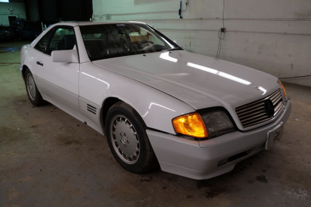 Up for a NO RESERVE auction is a 1992 Mercedes-Benz 300SL, finished in classic white over gray. I would rate the exterior of this 300 SL to be in AVERAGE CONDITION for its age and mileage. As you can see, this is a good looking car. In fact, the only thing keeping it from getting a higher "Joe Rating" is a few physical flaws. As you can see, there are a few pieces missing to the grill and a piece of trim is missing from under the right headlight. Also, the front bumper is damaged slightly on the same side. There is a little damage to the RF fender (under the lip) and a deep scratch on the rear of the trunk lid. As a whole, the paint shines wonderfully and looks as smooth as glass. This 300 SL has obviously spent it's life in a garage. I originally bought this car to pick at the few little cosmetic issues as I love the R129 body, but I've been on a mission to clear out little pet projects and toys I can live without...so this 300 SL is looking for a new home. All of the glass and lenses are intact. The original alloy wheels show well. The rear tires are pretty thin so I'd look to replace the tires soon.