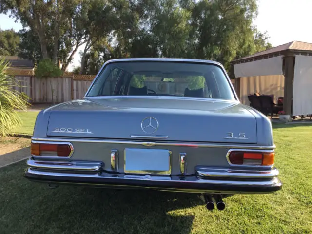 I've owned this wonderful 300 SEL for the last 14 years. It's painted Mercedes Blue with blue interior. The leather seats have been reupholstered along with the the headliner being replaced. The carpets are original and in excellent condition. The motor is the bullet proof 3.5 liter Mercedes V8. The paint is excellent with very minor imperfections and the body is arrow straight. The options include; power sunroof, power locks, AC, power steering, air ride (maintenance just performed - $2600.00), rear window defroster and rare period correct original BBS wheels. The chrome is excellent except for some oxidation on the license plate light chrome housing and the passenger rear upper bumper end. Has functioning original Becker radio with power antenna. All glass including the windshield is in excellent condition.