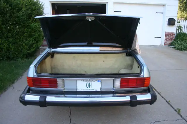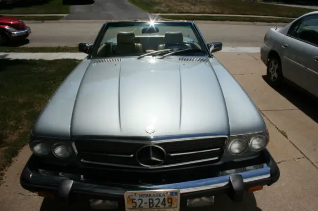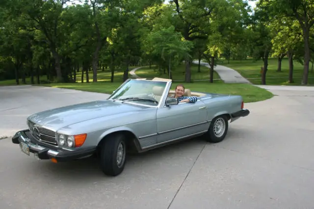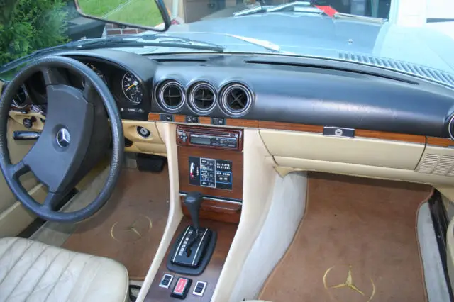The Mercedes 450SL is one of the most revered personal luxury coupes ever built. It's lines are timeless. While it may be true that a fair number of these cars still exist, few can equal this excellent combination of excellent maintenance by a mechanical engineer for most of its life, new Michelin tires, new battery and new brakes by Omaha Mercedes dealership and amazing appearance and body condition. The air conditioner works (very rare) and its original manuals are in the original holder. We have the original convertible top wrench and will include three great books on the car, nice key chains and all records. The soft top is new within the last three years-never used except to stretch it once a year and inspect-it is navy blue.