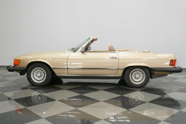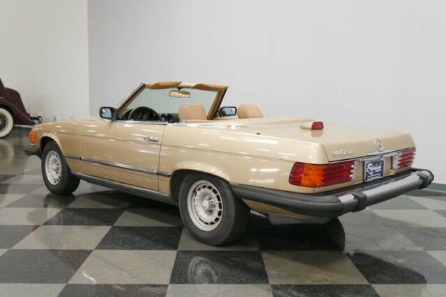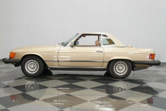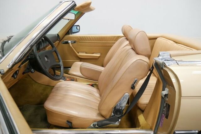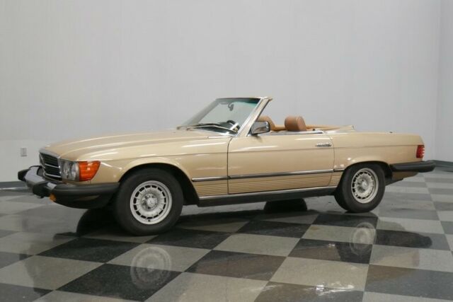 For those of you just joining the old car hobby, you can scarcely do better than an R107 Mercedes-Benz SL of any kind. Handsome, durable, fun to drive, and with great parts availability, they are easy cars to own. Even better, most folks still think they cost a fortune, so showing up in one of these makes you look like an A-lister. Don't worry, we won't tell anyone how little this elegant 1985 380SL really costs now, but be sure... to remember that it originally listed for $44k plus. Almost everyone in the world can draw one of these from memory, and throughout the '80s, you couldn't go out in the sun without seeing one. Today, however, finding a good one isn't so easy, because they, like most cars of the period, were susceptible to the dreaded tin worm just like everything else. Fortunately, this one has led an easy lifelong Tennessee life with only three owners and shows none of the issues that you see on cars that were used for daily transport. The Colorado Beige paint is original and remains in fine order and the sheetmetal underneath is quite straight, further proof that was always a weekend cruiser that never had to work hard. Fantastic build quality is a big part of these car's appeal and a key to their longevity, and you can feel it just by closing one of the doors. The light beige paint gives it a sleek, subtle finish that ideally suits the 2-seater, a grown-up look that doesn't need to resort to flash to make a statement. You'll also note that the rubber bumpers are in very good shape and not cooked by the sun and the chrome remains shiny to give the Merc a little flash. The tan seats are in good shape thanks to the durable MB-Tex upholstery that wears like iron. The natural wood on the dash adds a luxurious warmth to the interior and remains in fantastic condition with minimal wear and none of the expected signs of age. The seats are firm and comfortable for all-day cruising, and supportive enough for the spirited driving for which this car is intended. By 1985, most of these came loaded with every available convenience feature, including automatic climate control, power windows and locks, cruise control, and even a rear defroster for the removable hardtop. Heck, even the original Becker AM/FM/cassette stereo is still in the dash! It's also worth noting that the convertible top is in excellent shape and the hardtop seals it up as well as a coupe. The 3.8 liter V8 was downsized from the earlier 4.5 liter unit, but gives up only 7 horsepower (215 vs. 222). As a result, the 380 feels more agile thanks to a lighter front end, yet still zips around town with ease and hammers down the interstate at supra-legal speeds. The car has always been properly maintained and serviced from the looks of things, and as a result, this is an SL will last practically forever if you keep that regular care up. The 4-speed automatic transmission shifts properly and the car has that same firm but supple feel in the suspension that makes it feel confident under almost any conditions. Power steering and power four-wheel disc brakes are standard for the SL in this year and very welcomed additions for drivers of any experience level. Familiar Mercedes-Benz "pie crust" alloys are quintessential SL roadster, and carry reliable 205/70/14 Michelin blackwall radials at all four corners. Nicely preserved and always loved by its three Tennessee owners, this is the SL that you can buy without worries. Enjoy one of the smartest buys in the hobby today. Call now!