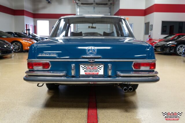 1972 Mercedes Benz 280SE Blue over Blue Vehicle Highlights: 2.8 Liter Straight Six Engine Rated at 158 Horsepower 4-Speed Manual Transmission 14-Inch Wheels w/ Painted Hubcaps Ivory White Steering Wheel Manual Windows Manual Door Locks Manual Vent Windows Factory Heater w/ Defroster Includes: Original Owners Manuals & Service Booklets Only Three Previous Owners Original Tool Kit First Aid Kit Road Warning Triangle Includes Two Keys We Can Assist With Shipping Around the World!