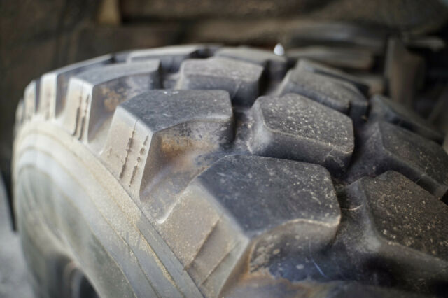 Tires have less than a few hundred miles on them. A custom spare tire carrier has been installed, however; the tire is not yet mounted. I will include the required longer lug nuts to install in the carrier to be able to fit the larger than stock tire/wheel.