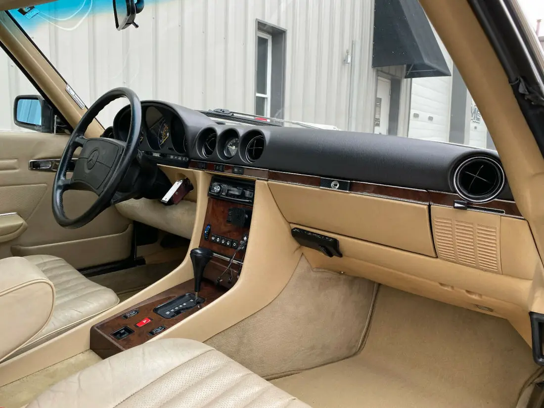 This is a pampered 1988 Mercedes 560 SL that has had 3 previous owners. All of which have lived in nice climates. Indiana, Florida and California. One of those owners was the Family of Gregg Popovich San Antonio Spurs. This is a Hard Top convertible. Included is a stand to store the top when it is off the car. A Luxurious Leather interior keeps you riding comfortably. Every option imaginable is on this gorgeous car. The powerful 5.6L Multiport Fuel Injected V8 provides plenty of power to give you that in command feeling you only find in a beautifully crafted automobile such as this. It sold new for $61,125 when new. Purchase today for less than half that price. These are becoming quite collectible. Maybe it is time you had one in your garage!
