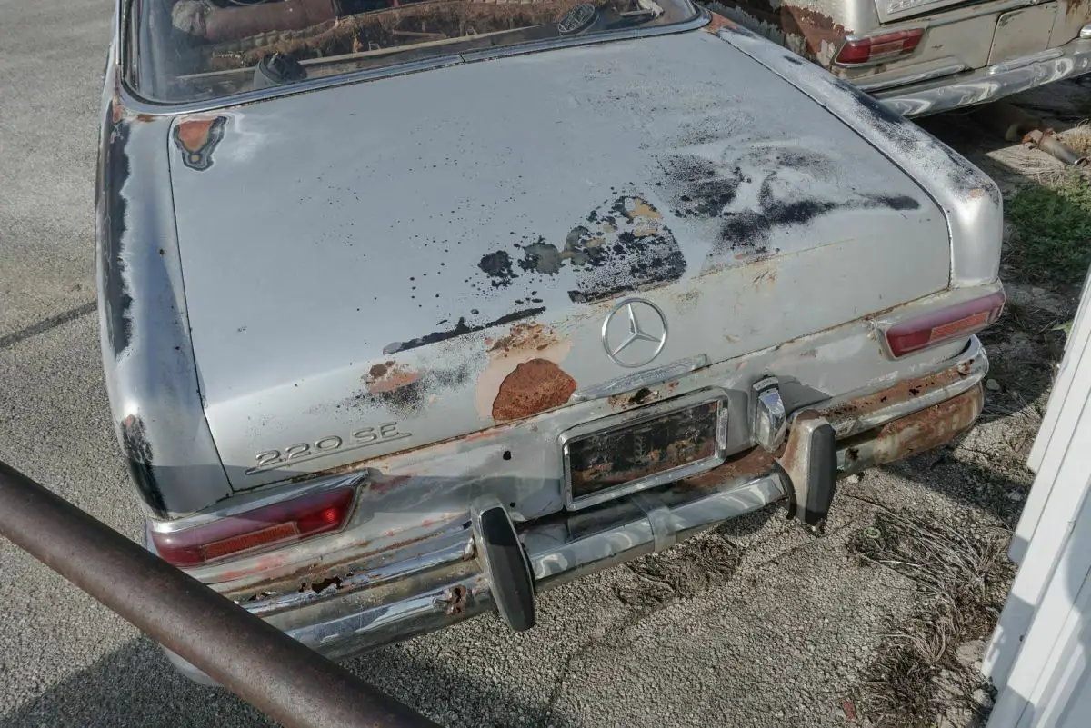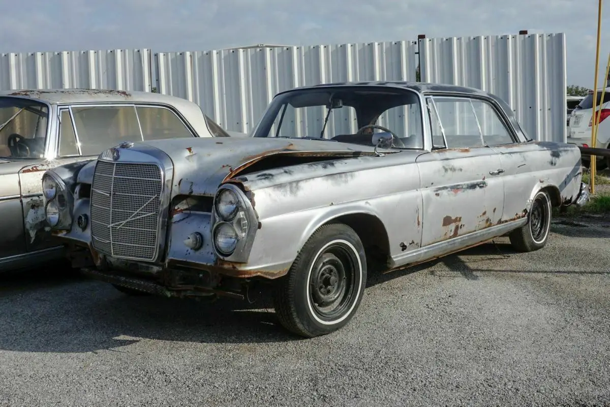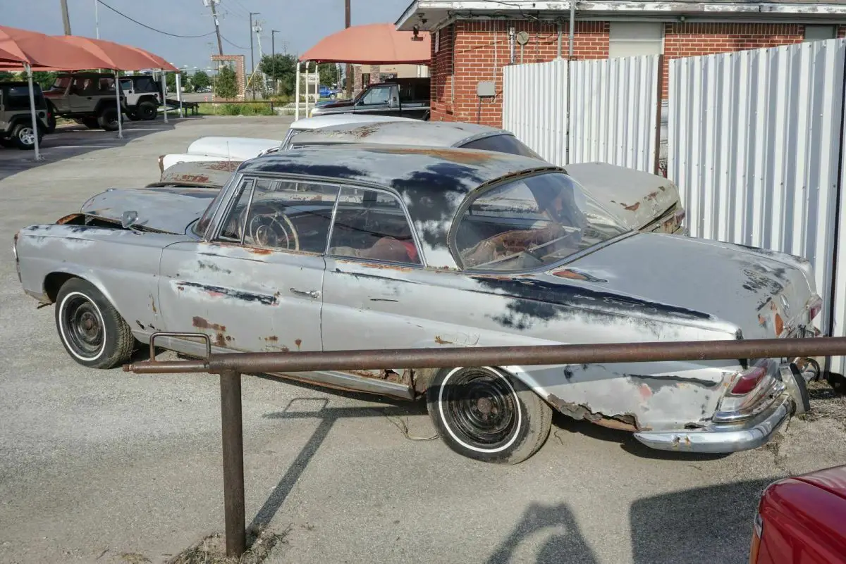 1962 Mercedes Benz 220 SE Coupe for restoration with 2 parts cars (No titles), appears to be a factory black car, fuel injected 6 cylinder, automatic, bucket seats, red interior. Second silver car is a 250 SE coupe, fuel injected, 6 cylinder, 4 speed manual transmission, bucket seats, black interior, third car white 220 SE sunroof coupe, looks to have been a factory green car fuel injected, 6 cylinder, manual floor shift transmission, red interior. Chassis number are on all 3 cars, ID tags present on all 3 cars. Selling as a package only with 1 clear transferable registration (same as a title) for 1962 220 SE coupe. No parts sold you must take all 3 cars.