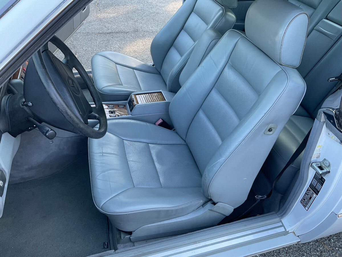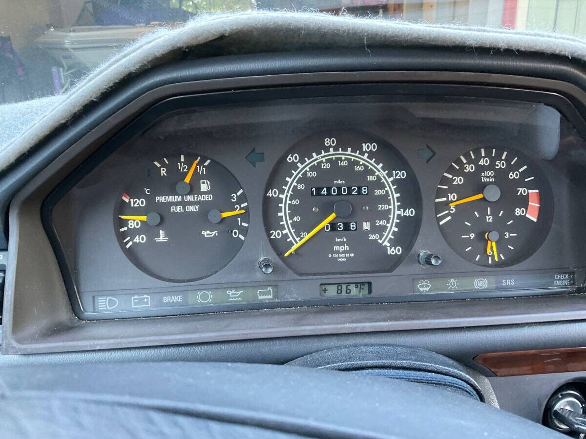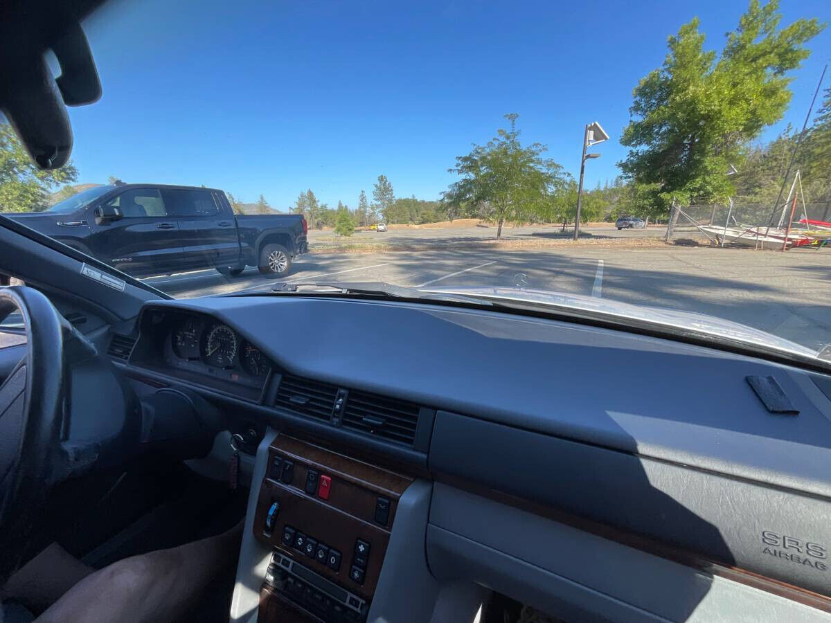 The grey interior is a study in a classic Mercedes and is plush and logical. The interior features NO CRACKS in the dash pad and only minimal wear on the drivers seat bolster. The passenger seat belt extending arm is sticky but the drivers side still works flawlessly, presenting you with the set belt when started. The rear headrests are activated from the dash, the sun roof works flawlessly and the ac is present.