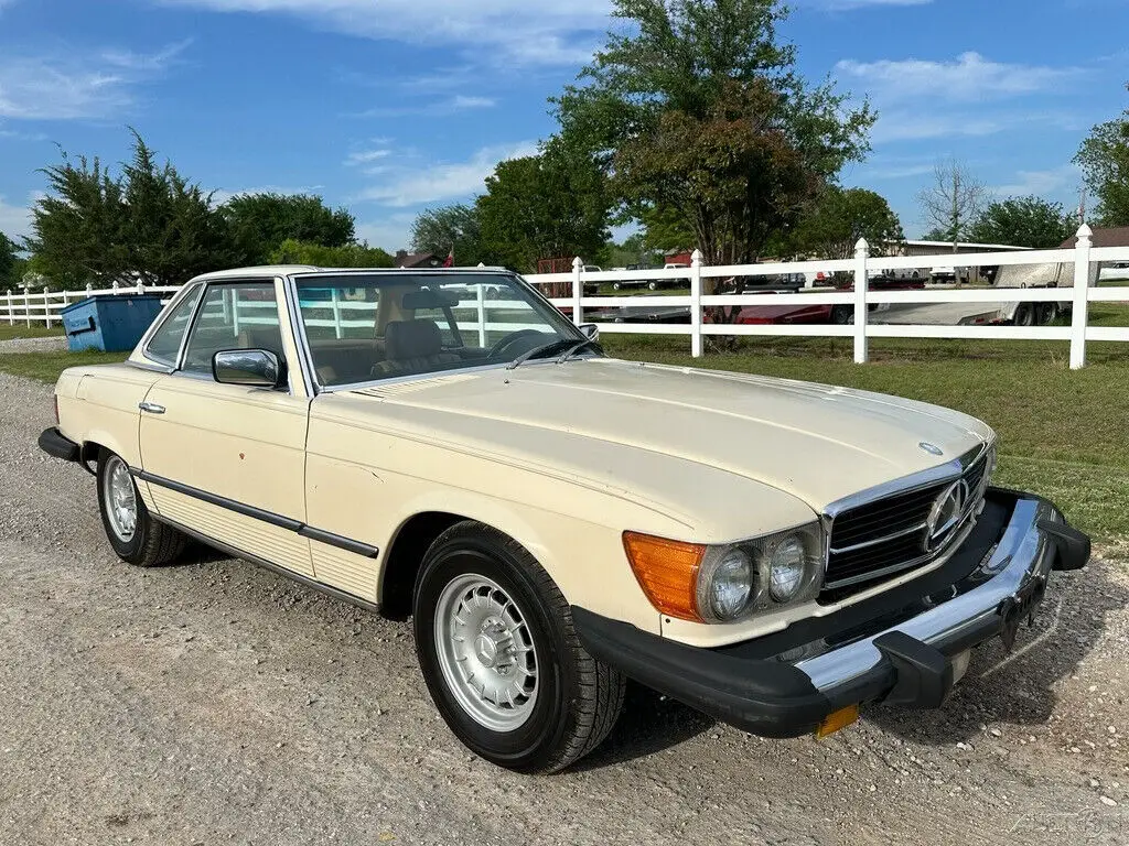 Scroll Down for over 100 Pics, Video Link NO RESERVE AUCTION 1980 Mercedes 450SL Texas Garage Find Sold as Running, Semi Driving Project Has Dual Tops This car will start and idle with no issues and drive in or on a trailer with no issues. However, this car has been parked in a garage for many years and may need servicing before any public road driving. The AC blows but not cold. The paint may be an older repaint as it shows light cracks on the trunk. It has typical dings, scratches and