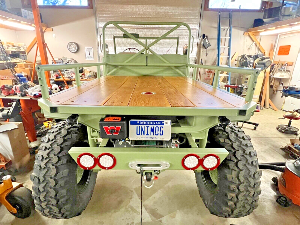 Need more power? We’ve got you covered. The engine in this Unimog is quite impressive! We have a fully rebuilt M130 from a Mercedes 250C with high compression and a hot cam from a 280SL. Listen to the exhaust note in the attached video. She’s healthy! Stock, this model had only 81hp with low compression. Those who are looking for good power in a Mog, look no further!! The engine in this fine example is a fully rebuilt M130, featuring: ✅ High-compression head & a hot cam from a 280SL ✅ 165HP – more than double the stock output ✅ Civilian ignition with MSD for reliability ✅ Zenith carburetor for off-angle stability ✅ Custom 3” stainless exhaust with a stack exit ✅ Ron Davis aluminum radiator & electric fan – runs cool under any conditions