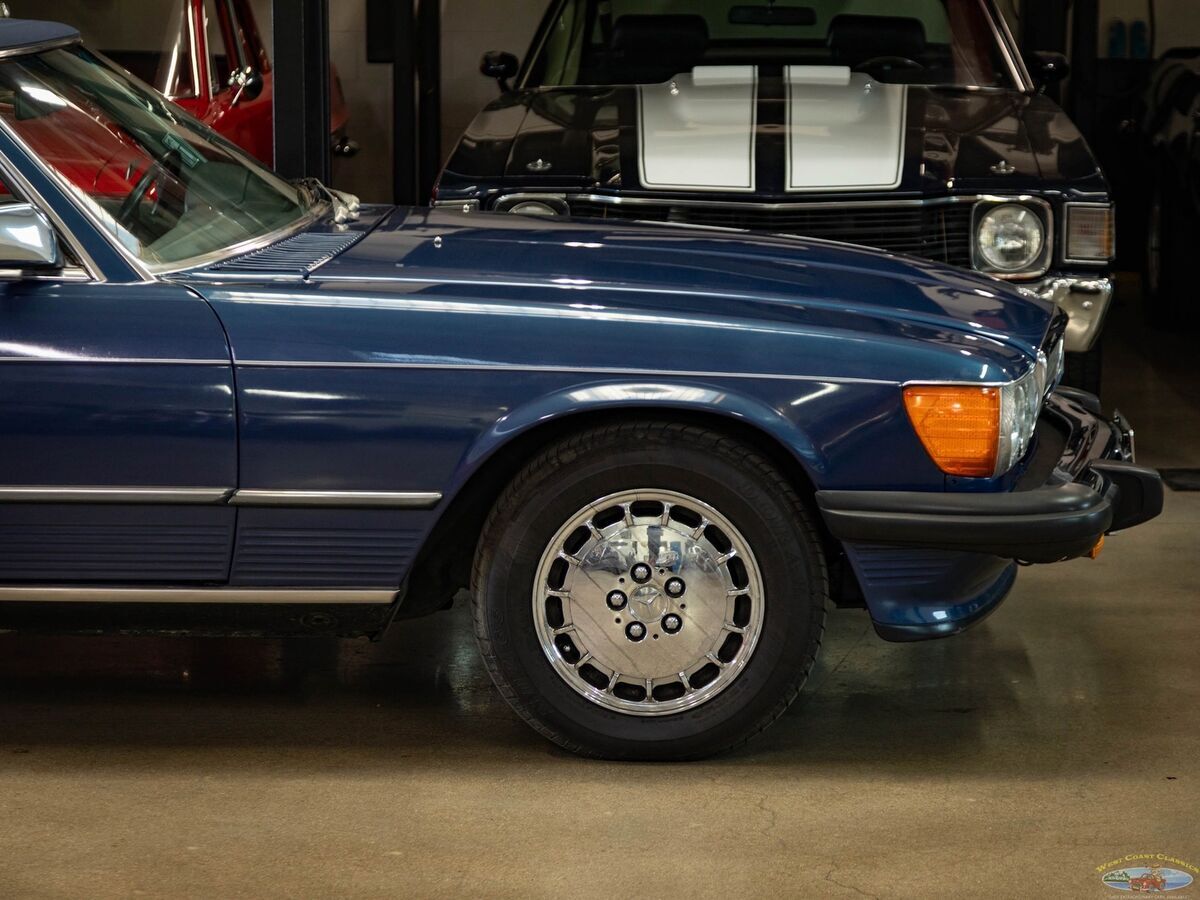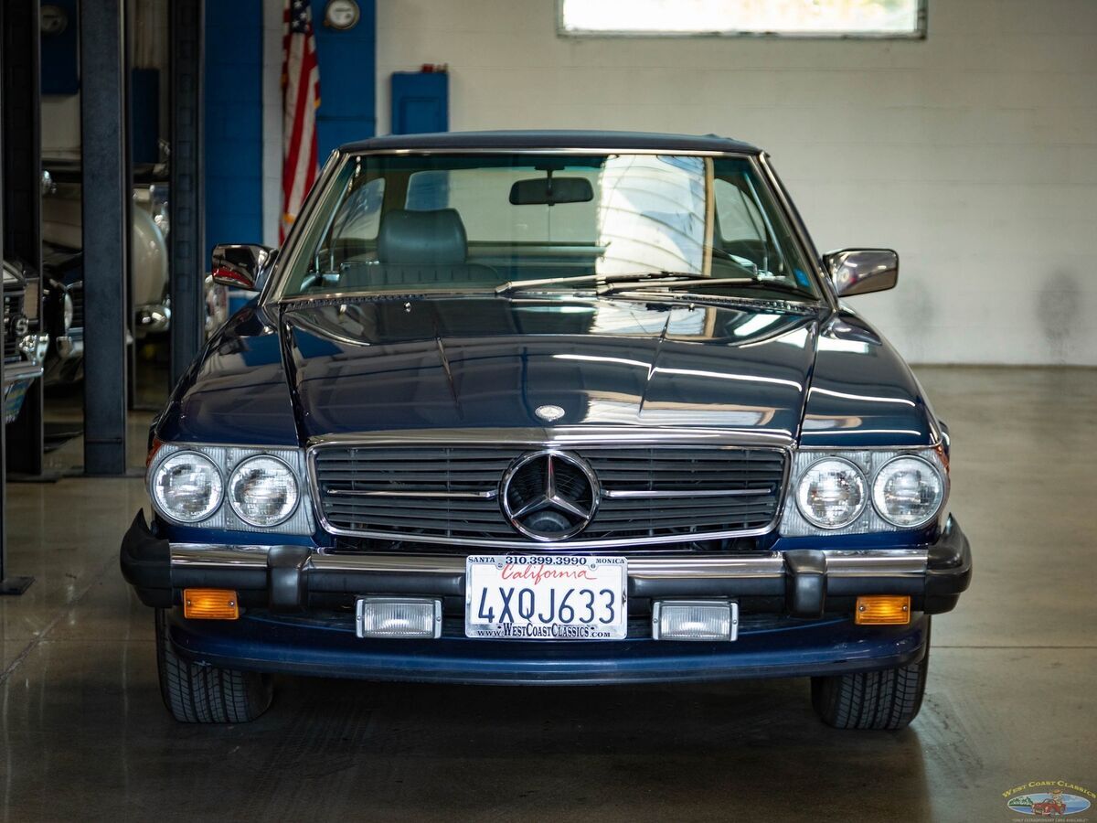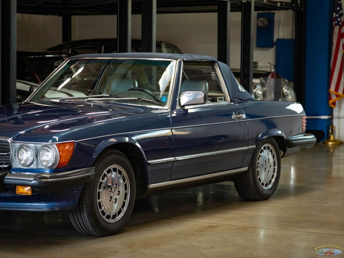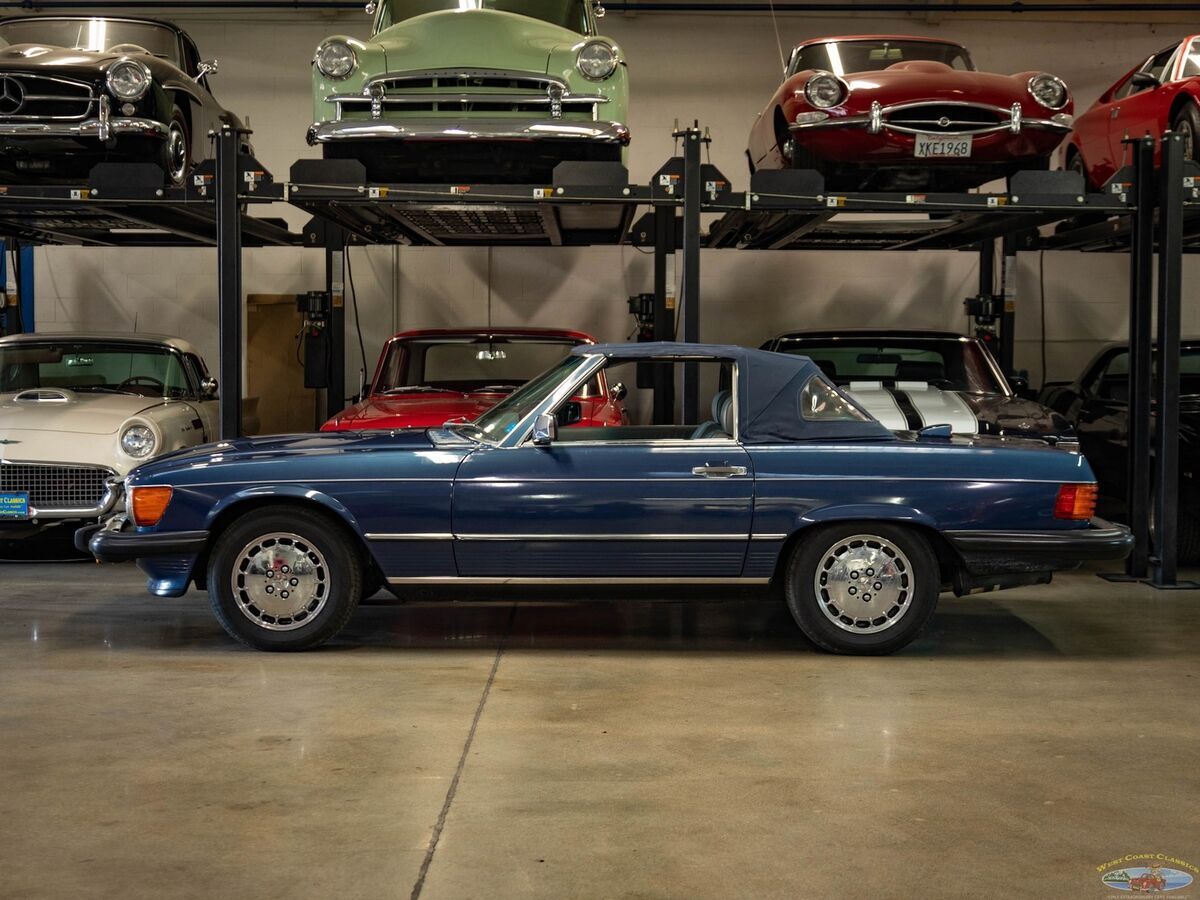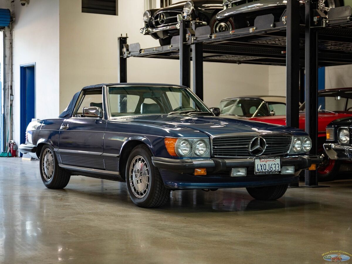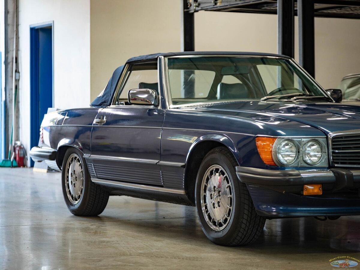 West Coast Classics are proud to present a striking example of this 1987 Mercedes-Benz 560SL roadster in its highly desirable and striking original factory 'Nautical Blue Metallic' (color code 929) paint with a 'Gray' (trim code 278) leather interior, its original 'Blue' German folding canvas soft top, factory chrome alloy wheels, matching factory hard top and only 57K original and actual miles!The car's factory options include: 5.6 liter OHC V8 engine, automatic transmission with torque converter, supplemental restraint system, anti-theft alarm system with radio theft deterrent, power assisted steering, cruise control, tinted glass, electric window lifts, electrically heated rear window on hard top, fully independent suspension, power assisted four wheel disc brakes, anti-lock braking system, light alloy wheels, limited slip differential, leather upholstery, adjustable bucket seats and head restraints, front center folding arm rest, leather covered steering wheel and gear selector, 'Becker' radio/cassette (replaced with aftermarket CD Player) with automatic antenna, Aerodynamic Halogen Head & Fog lamps and air conditioning with automatic climate control and central locking.Obviously always garaged with a clean CARFAX report with the original factory 'Nautical Blue Metallic' color paint and with a 'Gray' leather interior and with the original leather dashboard. The car has its original Blue 'German canvas' soft top which is still in excellent condition. The car also boats its original spare tire.The car drives exactly like such a well maintained and serviced and fully documented Mercedes with only 57K original miles should and must be seen and driven to be truly appreciated! All the options are working except for the A/C which does not blow cold.Without a doubt, this is one of the finest classically beautiful roadster designs built by Mercedes-Benz, probably the last classically beautiful convertible series they built and now becoming more desirable and collectible than ever before - certainly you will look long and hard to find a finer head-turning example with only 57K original miles in this most striking and desirable of color combinations available anywhere else!