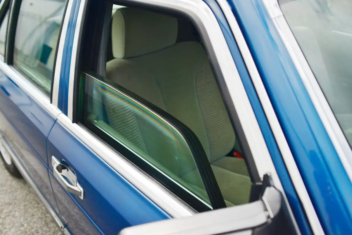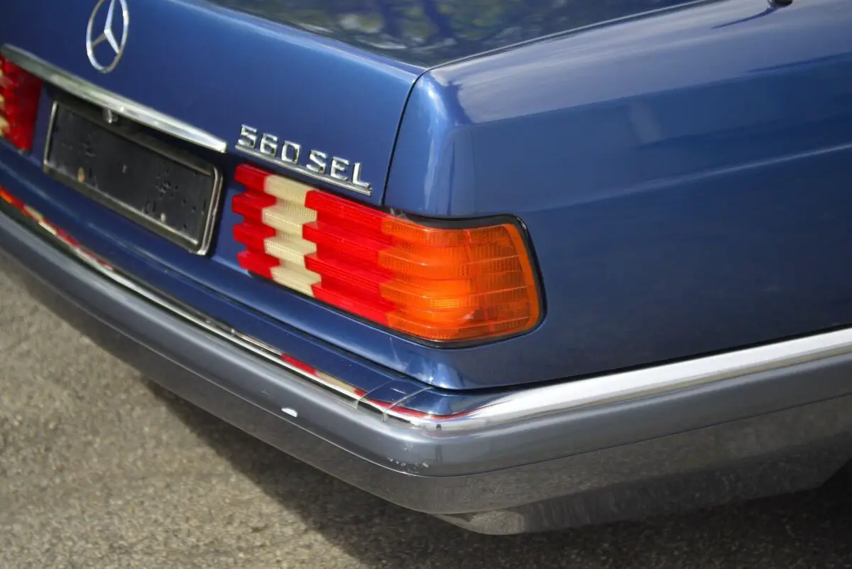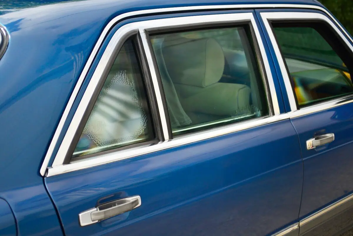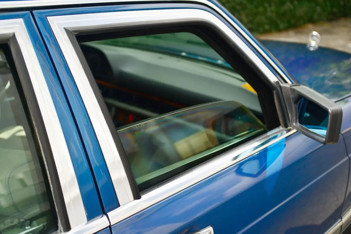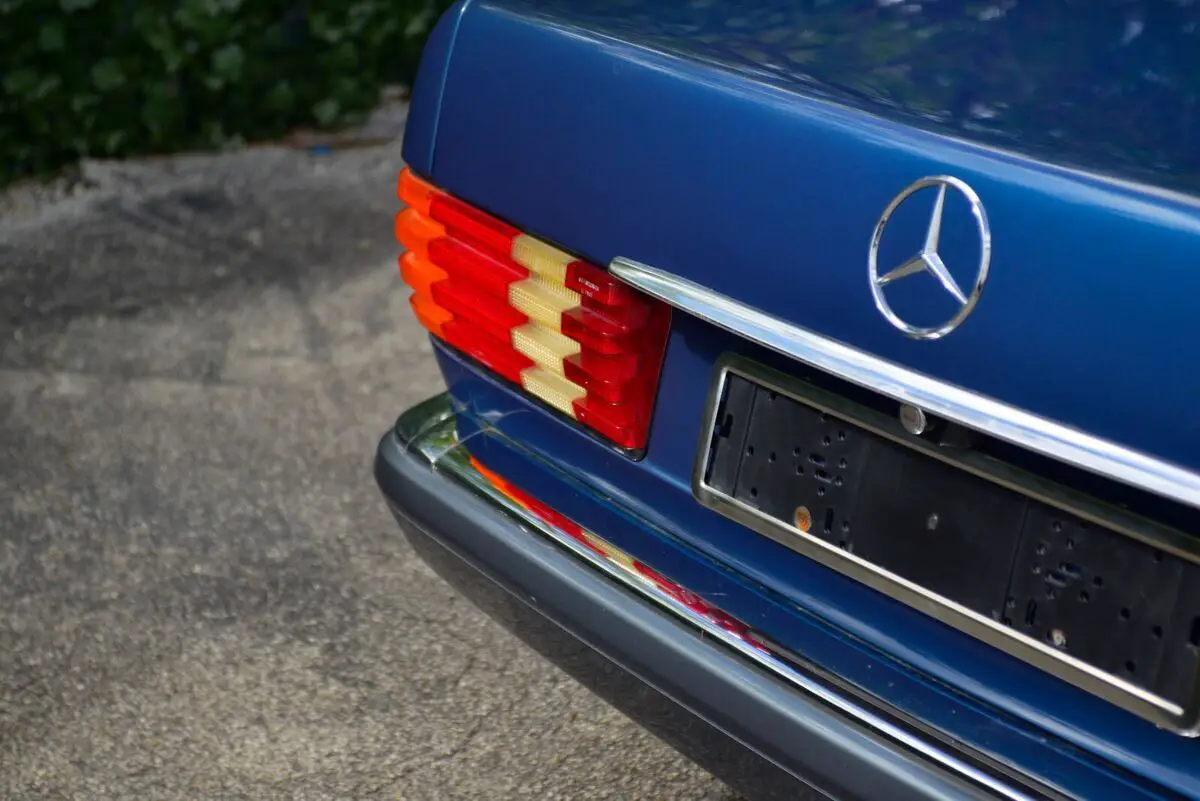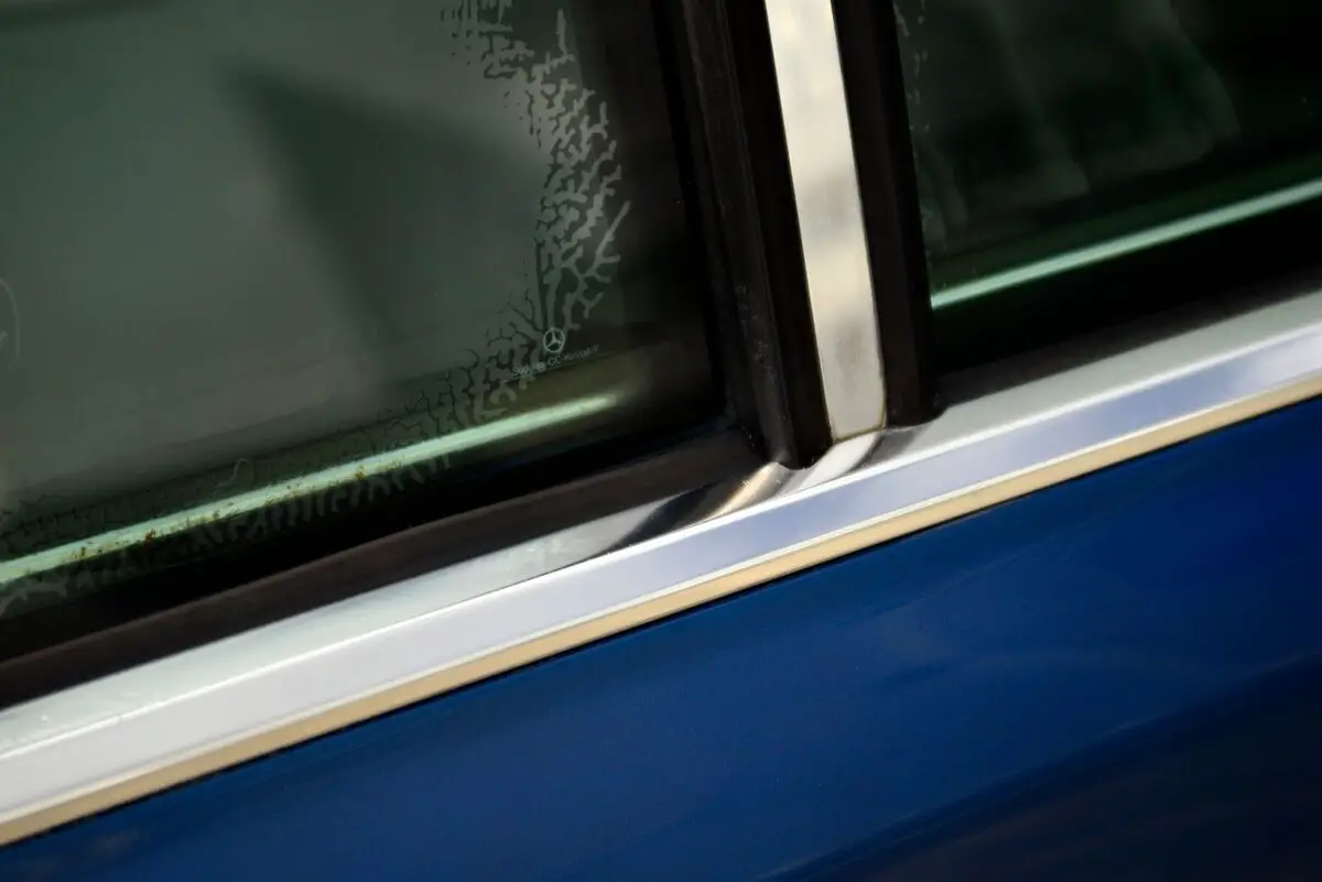 Condition is extremely good, no apparent rust, and the Lapis paint shows extraordinarily under the sunlight. Gray cladding is in very good condition as well as the factory wheels all around. MB Factory supplied armored glass is in outstanding condition for the age, showing only minor delamination of the outer layer.