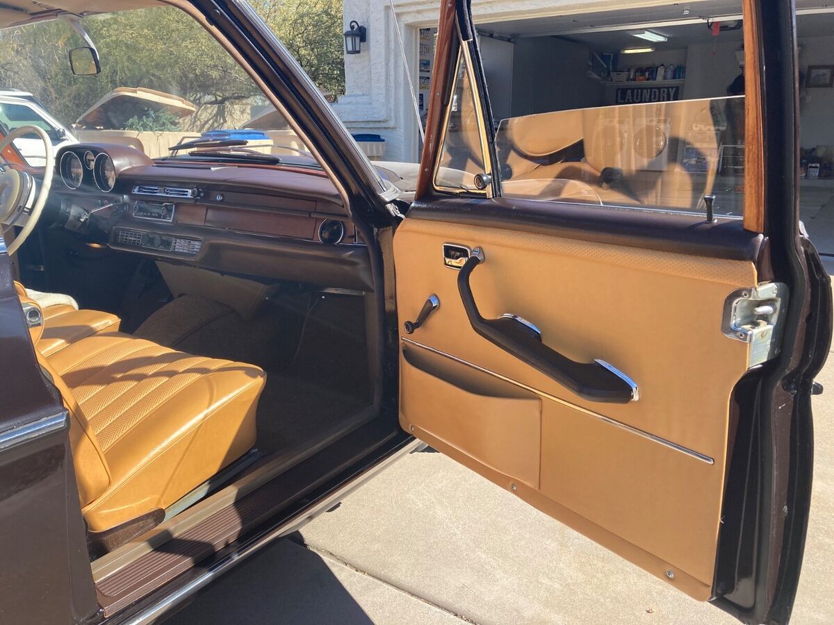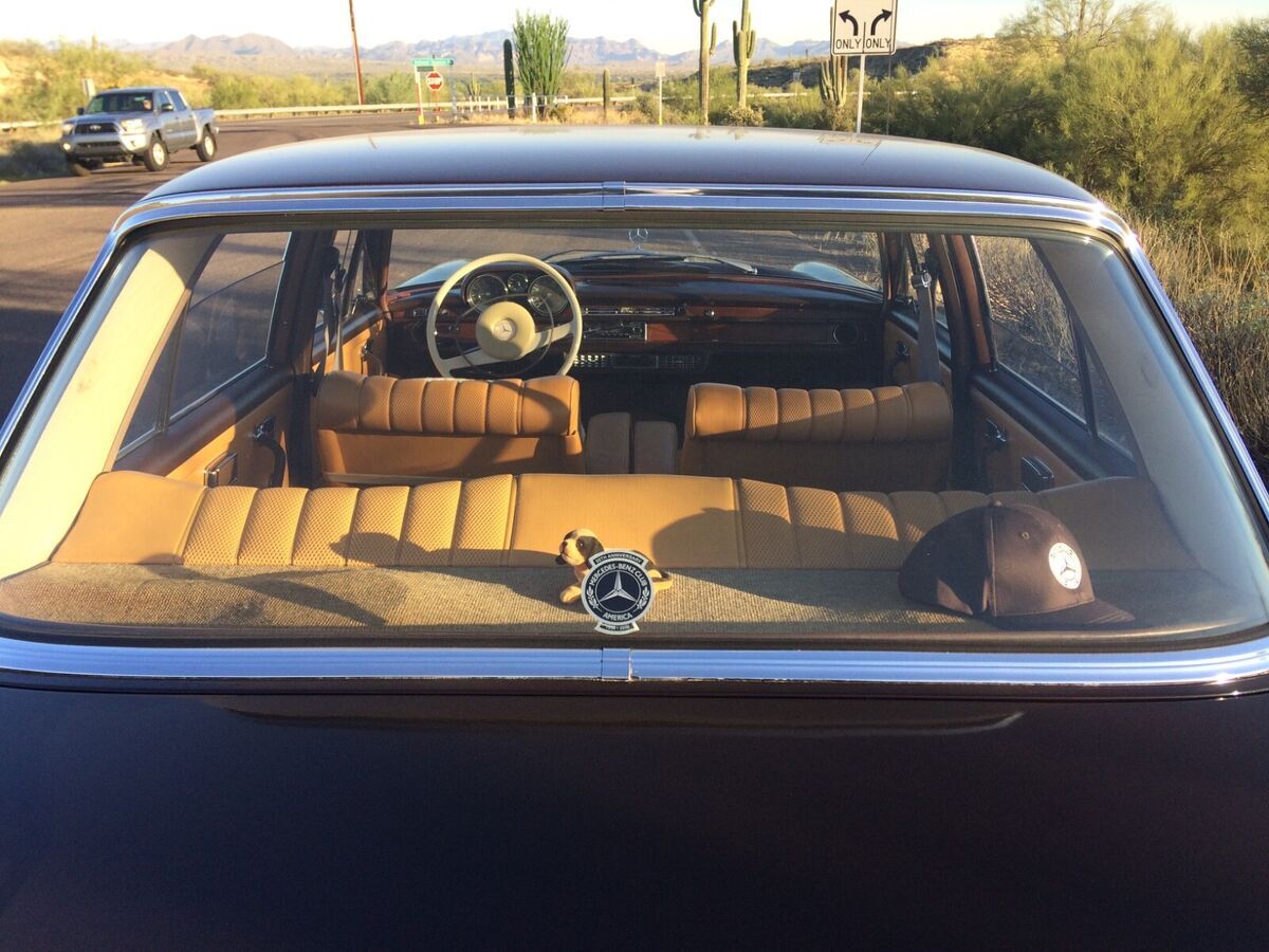 Interior: MBTex #114 Light Natural with brown accents interior. Interior is complete, very clean and original with no rips, no worn seats. Floor carpets have light wear. Wood is in excellent condition. No cracks in dash. Original and working radio. All gauges, clock and lights work. Heater and fan work well and all heater levels are functioning. Crank windows. Headliner doesn’t sag and isn’t damaged but has two small, discolored spots in the rear.Car has Thermo King airco, added by MB dealer in 1969. Airco works but not ice-cold.