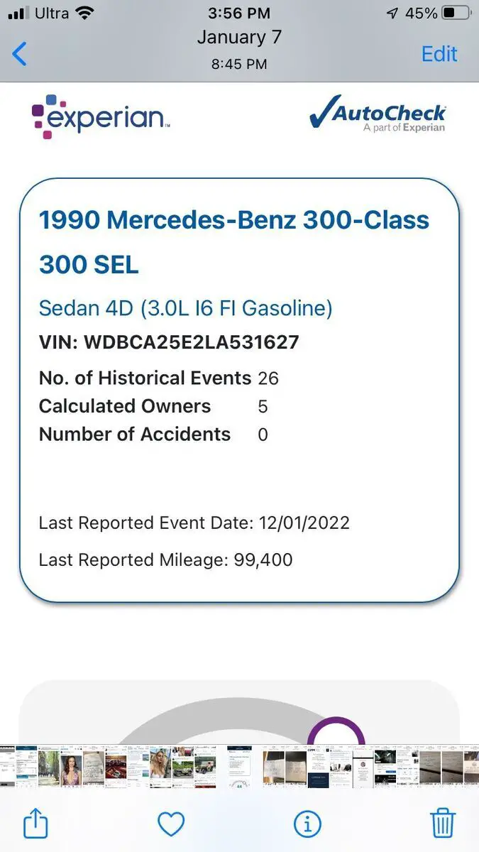 1990 Mercedes 300sel in very good condition,low miles,interior is like new,everything works including power antenna and radio,no check engine lights,has two spare tire with the rims,all service records and books,just was done:brand new battery,new tune up with wires,rotor and cap,air filter,fuel filter,spark plugs,oil,only needs to weld or replace mufler silencer,has a hole in it,selling AS IS due to age,please come over and check the car on the spot,I won't take any complains after the auction be over,period.