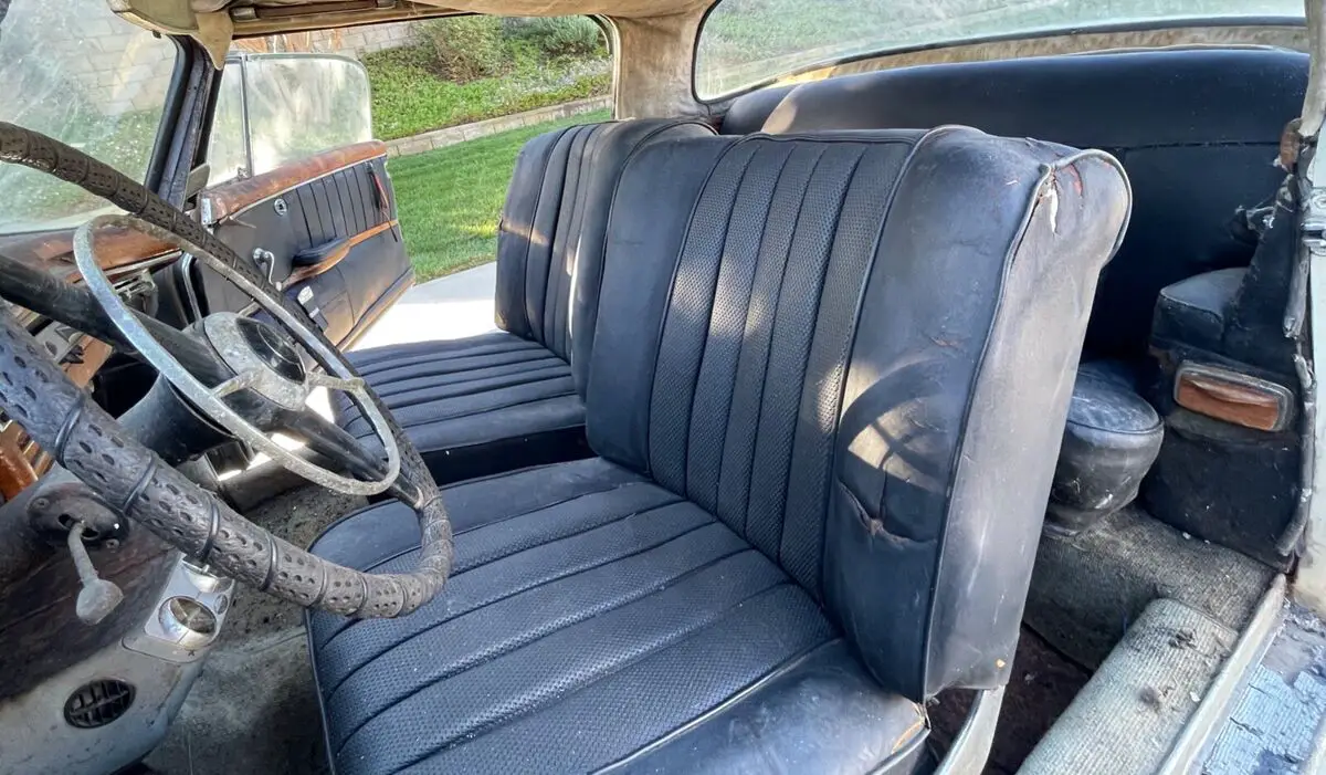 Trunk is in good clean condition, wood is good no rot just needs refinishing. All tires hold air, all glass is intact no chips or cracks. All chrome trim is intact as well. Interior is in fair condition for its age.
