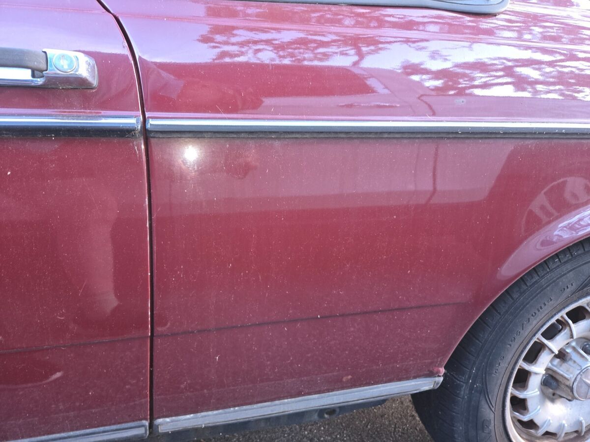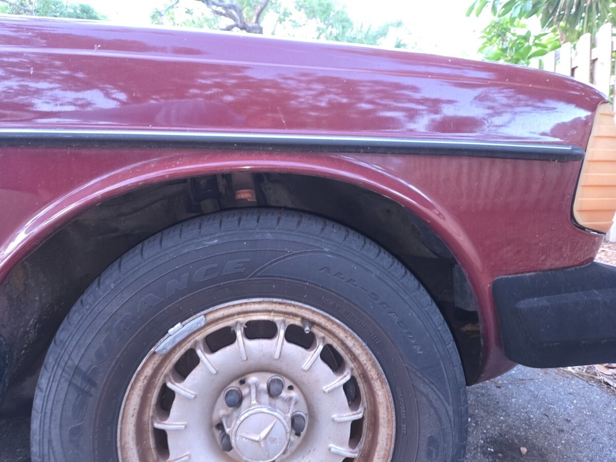 I'm the owner since 1998, my daily driver until the transmission failed recently. Suspension and brakes are good, no body damage, it's a joy to drive. Transmission must be rebuilt or replaced. Engine starts and is strong; starter is balky, can take a fn extra jolt or so from the ignition before the engine turns. "Chinese Red" is MB's term for the color, which is maroon or burgundy. Just shy of 200,000 miles. I am the second or third owner.Also listed on Craigslist, item 7840686048