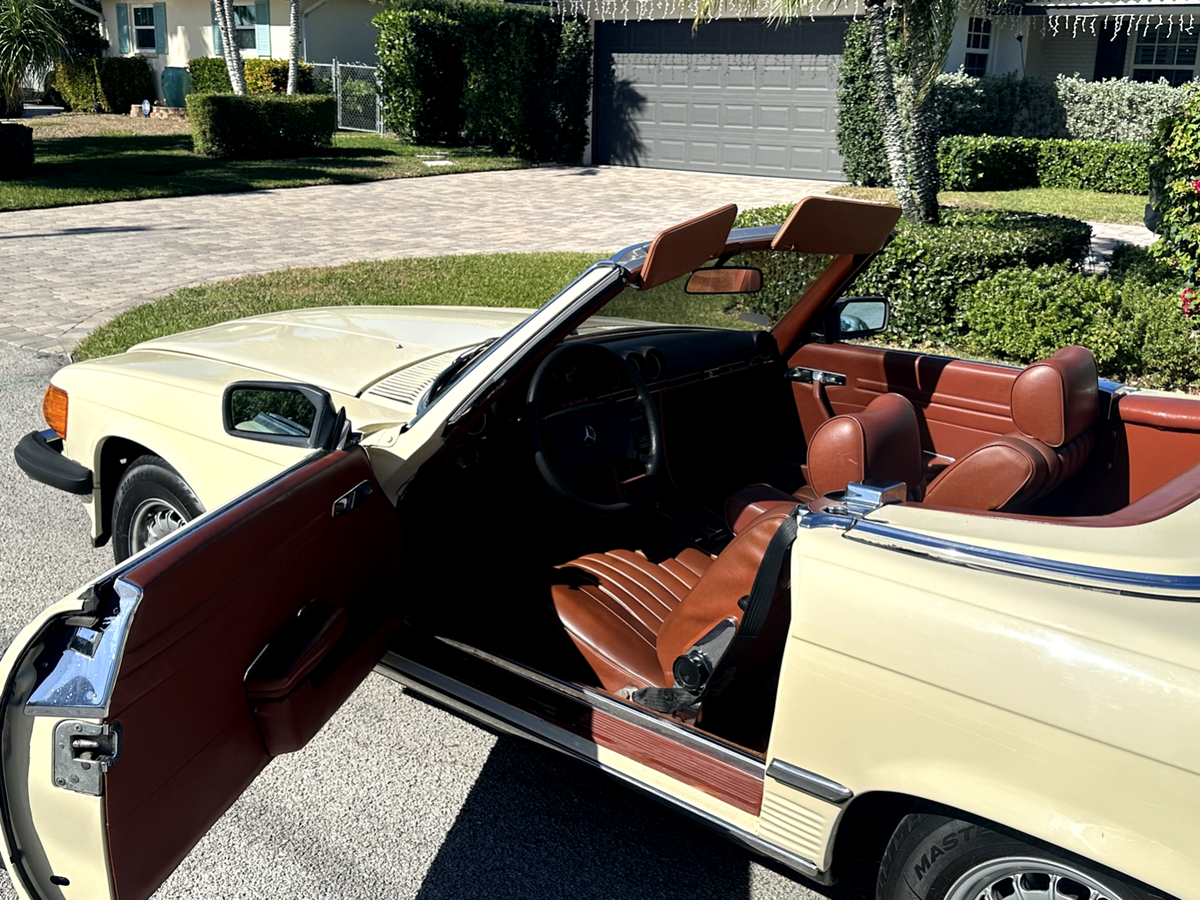 1980MERCEDES BENZ450 SL28K ORIGINAL DOCUMENTED MILES(PLEASE SEE MILEAGE ON TITLE IN PICTURES)RUNS AND DRIVES AS NEWBRAND NEW SOFT TOP AND WEATHERSTRIPPING COME WITH CAR!!!YOU ARE LOOKING AT A VERY NICE LOW MILEAGE EXAMPLE THAT LOOKS BETTER IN PERSON THAN IN PICTURES. CURRENTLY GETTING A BRAND NEW BLACK SOFT TOP INSTALLED SHE RUNS AND DRIVES BEAUTIFULLY. BROUGHT TO FLORIDA FROM PUERTO RICO IN 2018 AND STORED IN A CLIMATE CONTROLLED GARAGE IN BOCA RATON, FLORIDA. RECENT SERVICE INCLUDED SPARK PLUGS, WIRES, NEW BOSCH FUEL PUMPS AND FUEL ACCUMULATOR, OIL CHANGE AND OIL AND AIR FILTERS.CLEAN FLORIDA TITLE IN HAND!***PAYMENT IS WIRE TRANSFER OR CASH IN PERSON