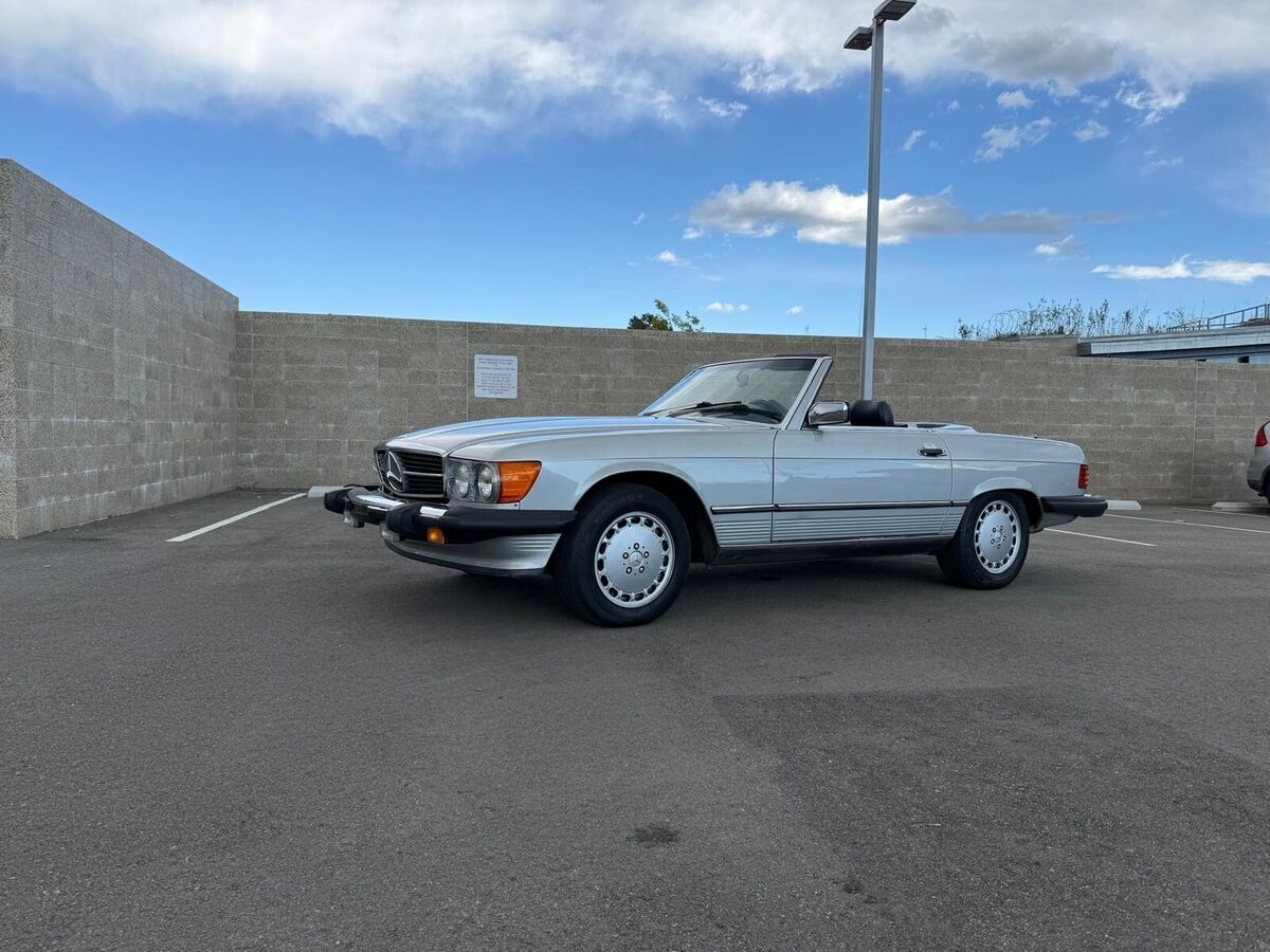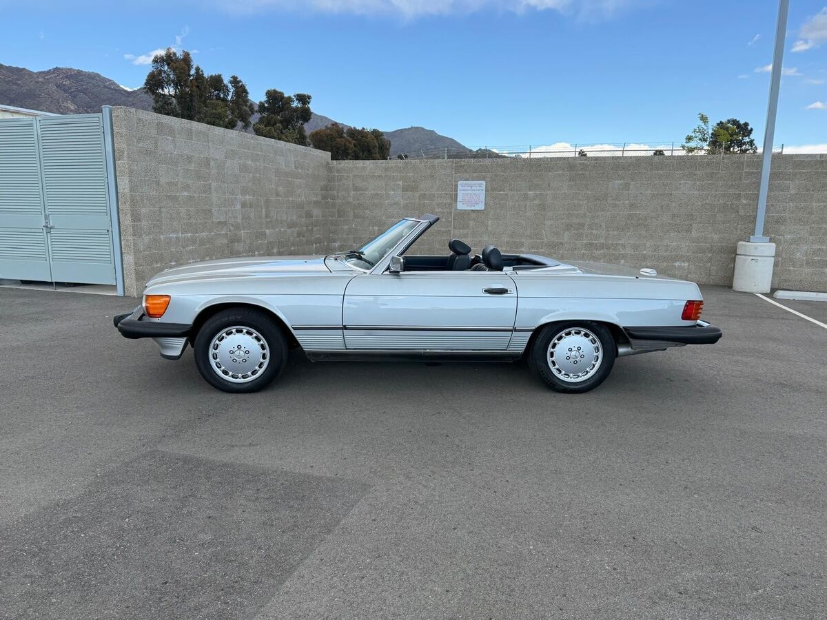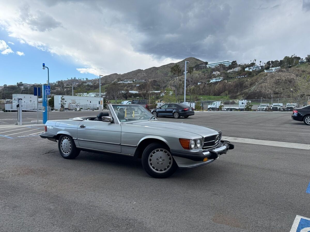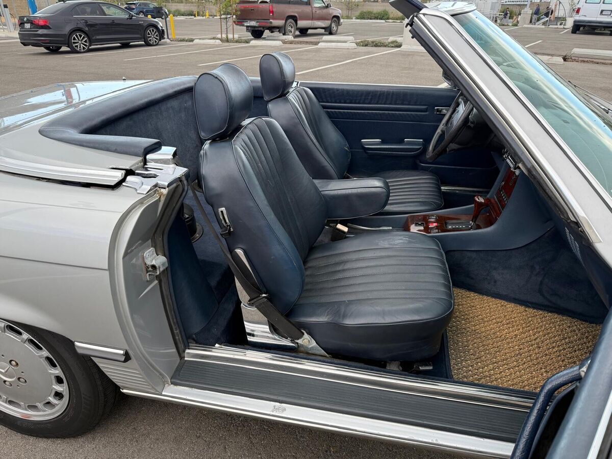 Stunning 1988 Mercedes-Benz 560 SL with a silver exterior and navy blue interior.This well-maintained classic has been recently serviced, with all maintenance up to date—service paperwork available.A fantastic daily driver that hasbeen living in Malibu, ensuring a well-preserved condition.Comes with a removable hardtop and Coco Mats.