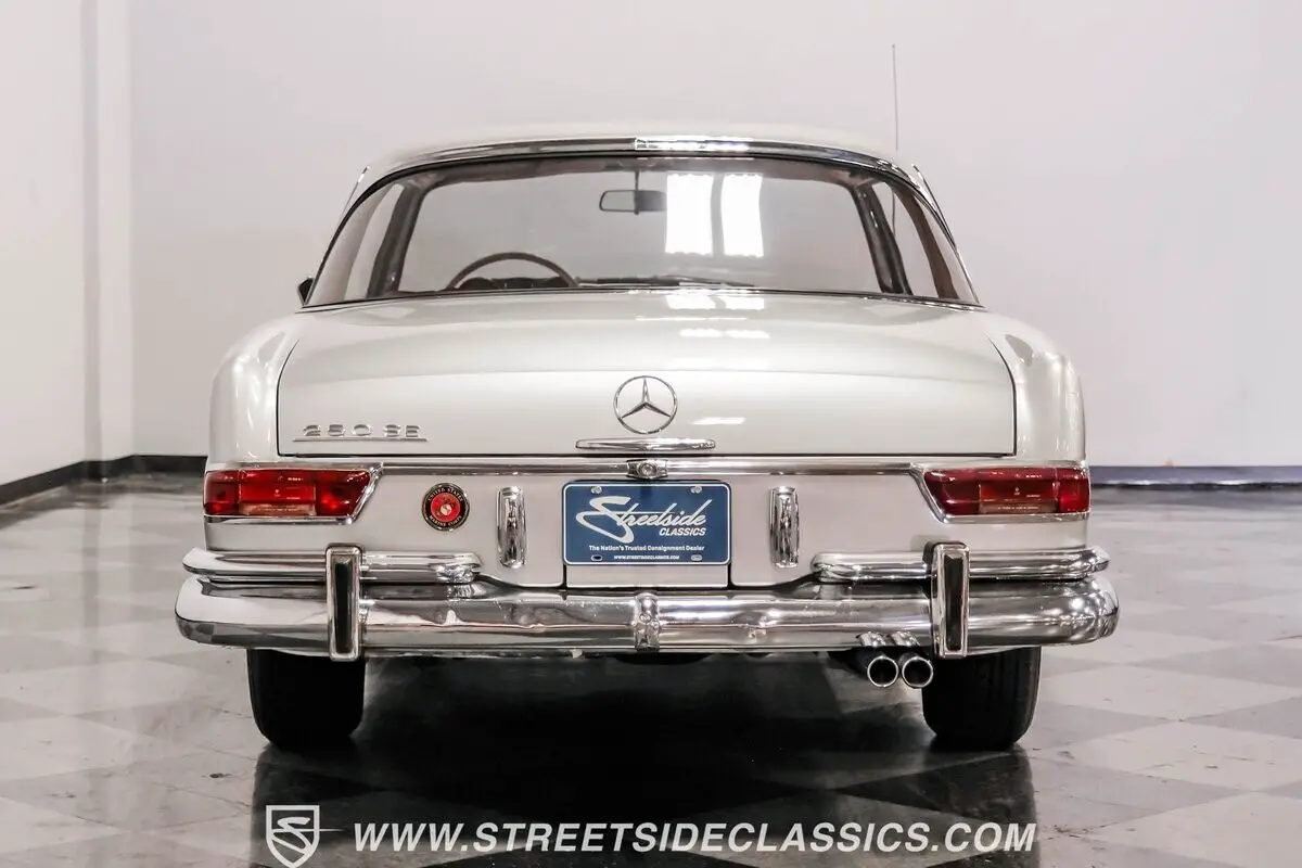 Sleek and sophisticated, this 1967 Mercedes-Benz 250SE Coupe dazzles in its silver paint, a fantastic example of German engineering excellence from the W111 series. Angular fenders and an elegant profile display the classic Mercedes styling that defined luxury motoring in the 1960s. The signature front grille announces this automobile's prestigious lineage while chrome accents along the body provide subtle yet distinctive flourishes. The proportions remain perfectly balanced with 14" wheels wrapped in 215/70R14 Hankook tires gripping the pavement. This high-class coupe maintains its dignified stature decades after leaving Stuttgart.