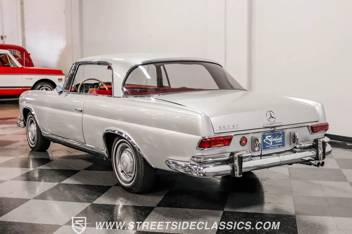 Vehicle Original VIN :844-822-62666529Sleek and sophisticated, this 1967 Mercedes-Benz 250SE Coupe dazzles in its silver paint, a fantastic example of German engineering excellence from the W111 series. Angular fenders and an elegant profile display the classic Mercedes styling that defined luxury motoring in the 1960s. The signature front grille announces this automobile's prestigious lineage while chrome accents along the body provide subtle yet distinctive flourishes. The proportions remain perfectly balanced with 14" wheels wrapped in 215/70R14 Hankook tires gripping the pavement. This high-class coupe maintains its dignified stature decades after leaving Stuttgart. Red leather covers the interior of this 250SE, creating a vibrant contrast against the silver exterior. The bucket seats offer firm support during quick drives while maintaining the comfort expected of a premium German automobile. A column-mounted shifter frees up cabin space, allowing passengers to stretch out in the luxurious surroundings. The wood grain accents, crafted by Madera Concepts in California, add warmth to the interior. The rebuilt Becker Mexico AM/FM radio provides period-correct audio entertainment without sacrificing authenticity or style. For motion, this Mercedes uses a 250 CI fuel-injected inline-six engine with single overhead cam design, paired with a 4-speed automatic transmission. Both were completely rebuilt and now show just 51,857 miles of careful use. The fully independent suspension system features coil springs with German shocks at all four corners, complemented by a front sway bar for improved handling. Power disc brakes provide excellent stopping ability, and the dual-to-single-to-dual exhaust system produces a refined exhaust note appropriate for a vehicle of this caliber. HIGHLIGHTS: • 250 CI Inline 6 Engine with Fuel Injection • Single Overhead Cam • 4 Speed Automatic Transmission • Engine and Transmission Rebuilt • All Suspension Bushings Replaced • Power Disc Brakes • Dual to Single to Dual Exhaust System • Independent Suspension with Coil Springs • German Shocks • Front Sway Bar • Silver Paint • 14" Wheels in 215/70R14 Hankook Tires • Red Leather Interior with Bucket Seats • Wood Grain Accents by Madera Concepts • Rebuilt Becker Mexico AM/FM Radio • Factory A/C System (needs servicing) • Power Steering German luxury and engineering combine in this 1967 Mercedes-Benz 250SE Coupe. From its fuel-injected inline-six to its distinguished silver exterior and red leather interior, this automobile offers classic Mercedes elegance in a timelessly styled package. Call today!