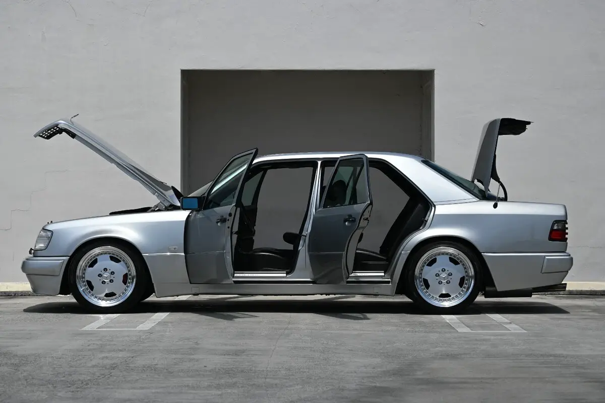 HISTORYFor those not familiar, the Mercedes-Benz E500 Limited was a run of 951 units produced for the European & Japanese market. These cars were available in either Sapphire Black or Brilliant Silver with gray, green or red mottled leather interiors as options. A Birds Eye Maple trim was standard however the normal Burl Wood was available on request. These vehicles originally shipped with 190 Evo II wheels as well. Each & every single E500 Limited has the “958” options code (VIN sheet provided in photo roll).VISUALS & TECHNICAL REPORTThere’s literally no bad angle for this machine. Finished in bright Brilliant Silver metallic paint, it’s a simple but luxurious color that highlights vintage Mercedes style. Large fender arches from the factory engulf the 18” JAuto BT90S wheels (finished with a matching silver face and deep polished lip) giving this 124 a mean wide look from all angles. The JAuto vintage rear section exhaust has factory AMG squared tips that gives an aggressive touch to the rear end.The interior is just as well kept as the exterior. The 958 Limited trim features a gradient print leather finish on the seat centers and door cards. Most examples come in Blue or Green finish but the Red gradient is quite rare. Paired with black accents all around, it’s a timeless design.Under the hood, the 5.0L M119 power plant has been well maintained. Other than a Samco radiator hose set, it’s a factory setup.CONDITION REPORTThis example is in outstanding condition. Higher mileage is commonly mistaken for an unreliable vintage machine when in reality, it’s quite the opposite when owned by the right individual. The Brilliant Silver paint is in excellent condition showing practically no chips or scratches. The JAuto wheels have no rash or chips as well.The interior condition practically matches the exterior. Top to bottom, the headliner and dash are in perfect condition. No sagging, no bubbling. The leather seats are in excellent condition as well. The driver’s seat shows slight signs of aging but removable seat covers have been used to help preserve the leather. The original spare tire and tool kit are included in this example and all trunk lining (visible and not) are intact.Regarding drivability, this 124 pulls excellent. No quirks, no misfires and the transmission feel is extremely crisp, practically modern regarding feel. High speed cruising is no issue.A binder full of service records from her days in Japan is available – containing notable maintenance such as (but not limited to):