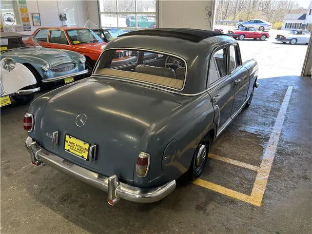 This Rare 1959 Mercedes Benz 219 Ponton One Of About 359 Or 10% Of Model 219's Built In 1959 With A Webasto Sliding Sunroof. Available In Blue With A Beige Interior. Equipped With A Matching Engine And Manual Transmission.