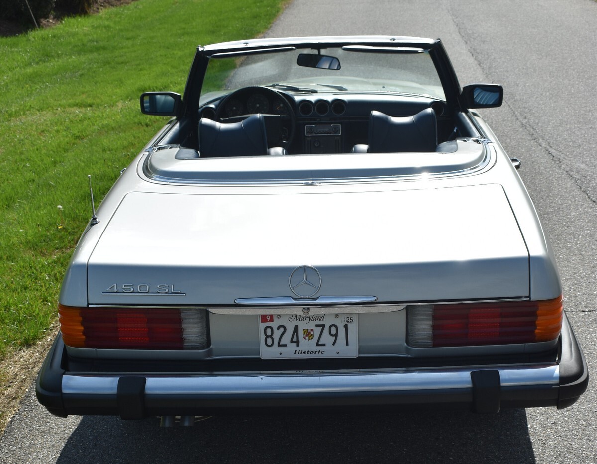 It is a well-maintained and detailed 450SL which comes with complete service records. Both the hard and soft top are in excellent condition and a cart is included for the hardtop. All the electronics function including the A/C, power antenna, radio, and clock. It starts easily and runs great. No disappointments.