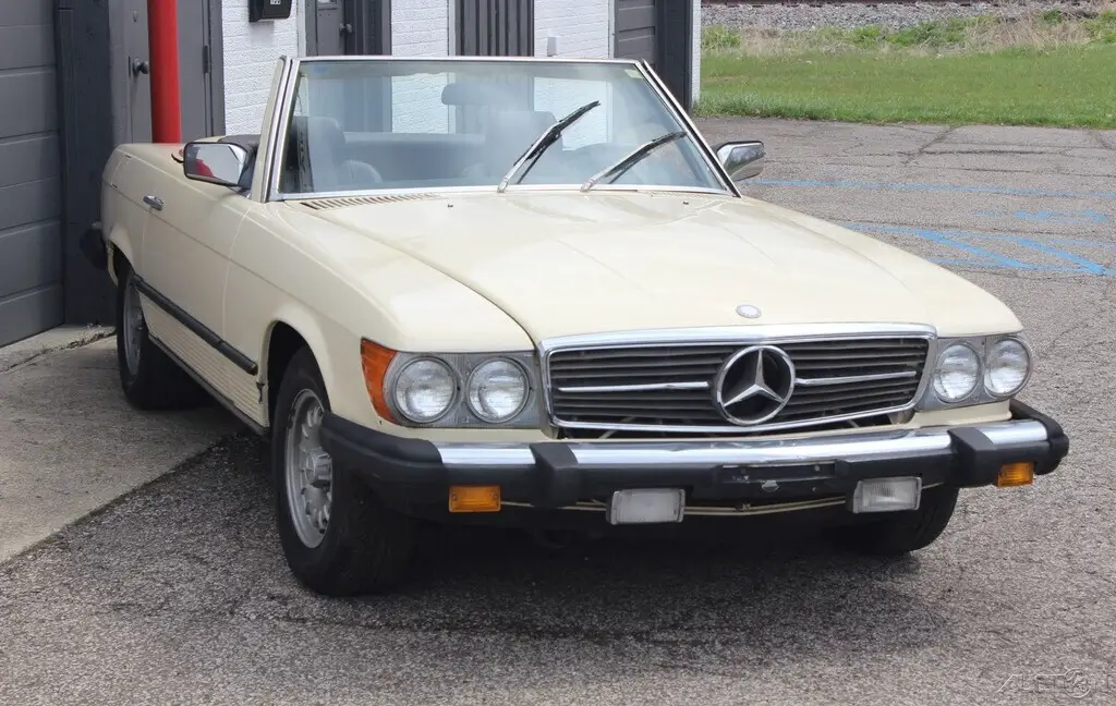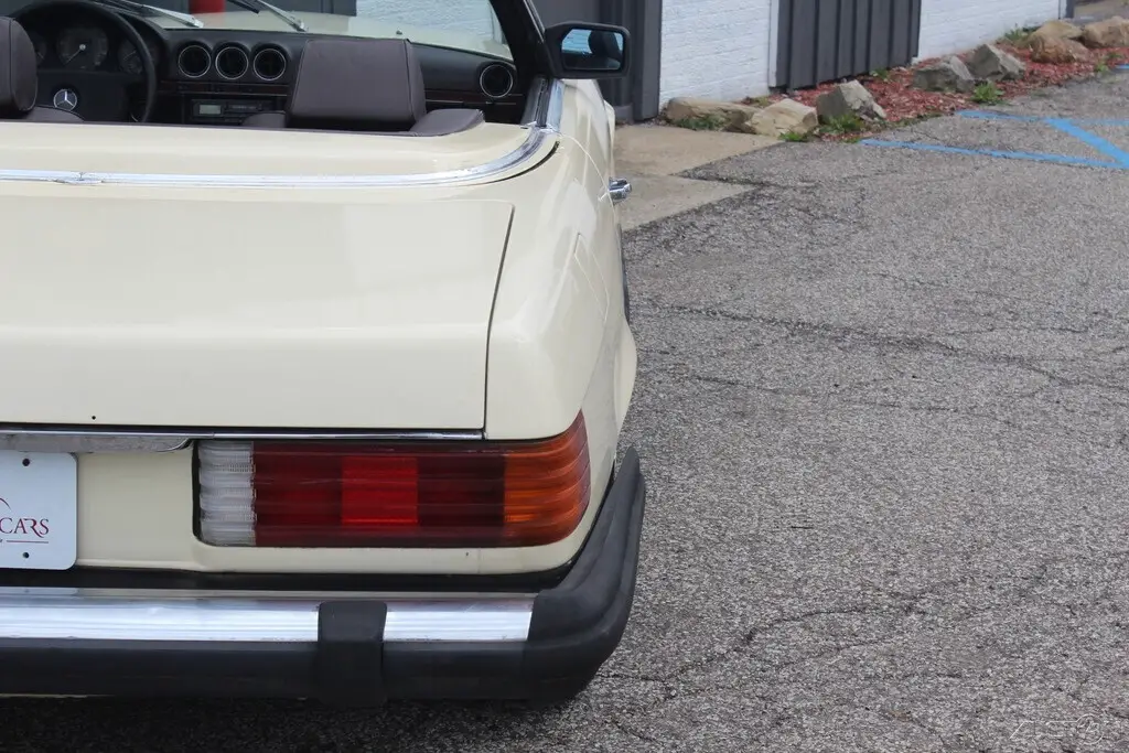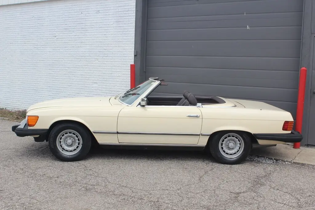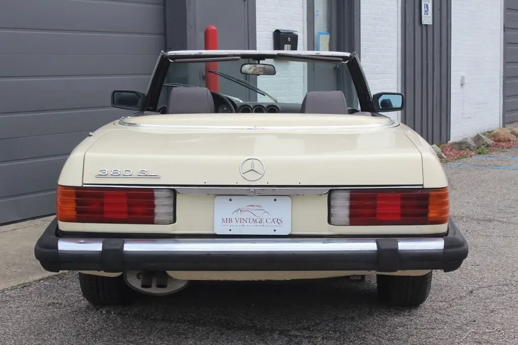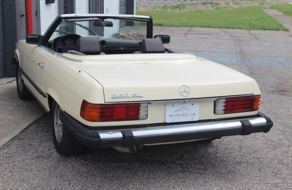 This is NO RESERVE auction for 1984 Mercedes Benz 380SL Roadster. Tan with Brown leather interior . Two tops. 23,000 original miles according to Car fax. The body is good, an extremely solid undercarriage. Some rust bubbles on various areas as you can see in the pictures. The original brown leather interior has cracks on the seats. Rear window glass is broken on the hard top. Mechanical condition is unknown, last registered in 2010. Did not attempt to start. Comes with clean and clear title. An excellent original low mileage car needing work. Any questions welcome. Please message or cal