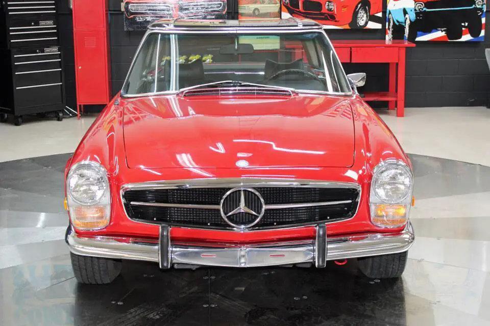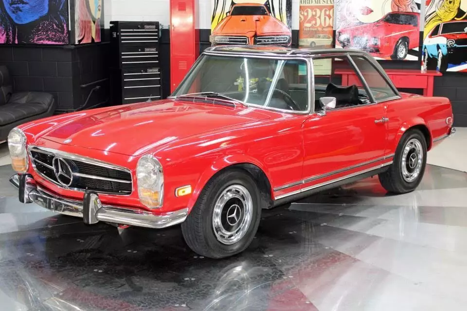 Call us Now !!619-378-0837 David Young on this 1969 Mercedes Benz 280 SL Produced at the Stuttgart-based Mercedes-Benz factory during in 1969, this lovely 280SL features an 3 speed automatic transmission, 2.8 litre in-line 6 cylinder engine, disc brakes, Blaupunkt radio and radar, side trim proper, Mercedes caps etc. This is a two top vehicle, and it comes form a long family ownership since 1984 with receipts dating back then. Vehicle runs and drives good, Looks beautiful please contact us for any further information. THE MERCEDES-BENZ 280SL History In the Spring of 1963, Mercedes-Benz debuted an all-new roadster to replace the 190SL and 300SL- The 230SL. The 230SL 'Pagoda' was a stunning Paul Bracq designed two-seat Cabriolet that followed Mercedes' new design language, featuring crisp lines and upright headlights. The 230SL was fitted with a prominent three-pointed star in its grill as a reference to the already iconic 300SL. To save on weight, the hood, door skins, trunk lid, and tonneau cover are all composed of aluminum. The nickname 'Pagoda' was quickly adopted thanks to the slightly concave roof on the optional removable hardtop that resembled a pagoda roof. Although controversial at its introduction, these SLs are now considered a masterpiece of design. In 1967, Mercedes-Benz introduced the third and final iteration of the 'Pagoda', the 280SL. The 280 featured the same modified W111 chassis with a rear swing axle and independent front suspension and four-wheel disc brakes. Power came from a 2.8-liter version of Mercedes' robust SOHC inline-six and used Bosch fuel injection- a combination producing 160 horsepower in US-market variants, which had to be modified slightly to comply with emissions standards. To compensate, the rear-end ratios were changed in these US-market cars to offer greater low-end acceleration. While the 280SL did not offer the performance of the 300SL, it is a very charming model with capable handling and braking thanks to its suspension and all-wheel disc brakes. These open-top Cabriolets also have one of the most beautiful bodies produced in the 1960s, and thanks to their robust inline-six and luxurious Mercedes-Benz interior, are wonderful cars to drive and enjoy.