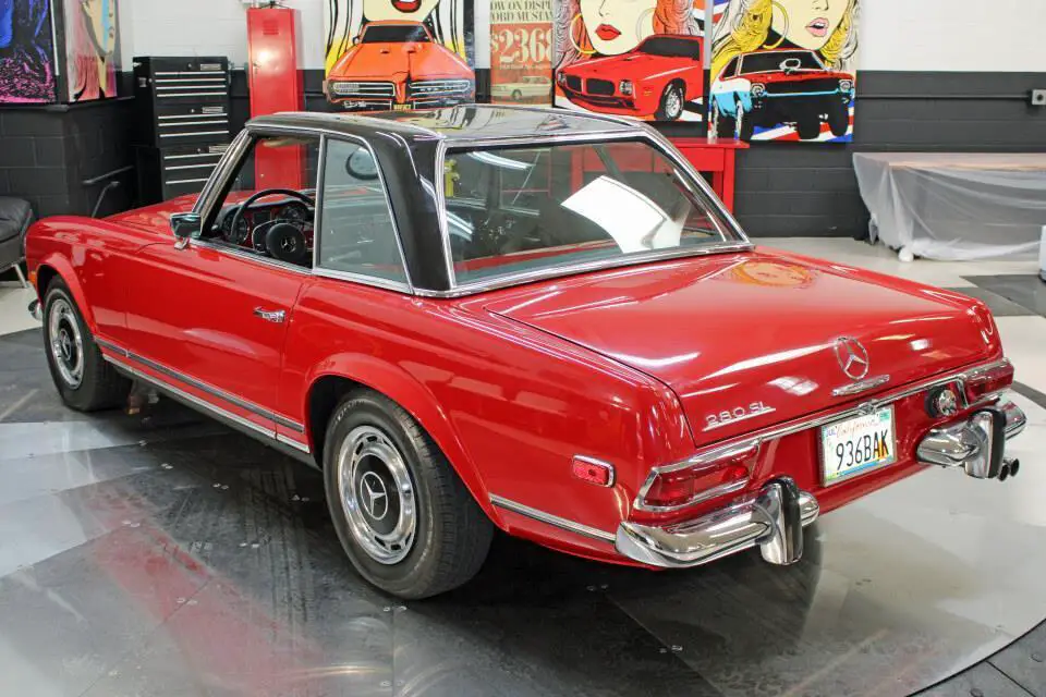 Vehicle Original VIN : 280SL006714Call us Now !!619-378-0837 David Young on this 1969 Mercedes Benz 280 SL Produced at the Stuttgart-based Mercedes-Benz factory during in 1969, this lovely 280SL features an 3 speed automatic transmission, 2.8 litre in-line 6 cylinder engine, disc brakes, Blaupunkt radio and radar, side trim proper, Mercedes caps etc. This is a two top vehicle, and it comes form a long family ownership since 1984 with receipts dating back then. Vehicle runs and drives good, Looks beautiful please contact us for any further information. THE MERCEDES-BENZ 280SL History In the Spring of 1963, Mercedes-Benz debuted an all-new roadster to replace the 190SL and 300SL- The 230SL. The 230SL 'Pagoda' was a stunning Paul Bracq designed two-seat Cabriolet that followed Mercedes' new design language, featuring crisp lines and upright headlights. The 230SL was fitted with a prominent three-pointed star in its grill as a reference to the already iconic 300SL. To save on weight, the hood, door skins, trunk lid, and tonneau cover are all composed of aluminum. The nickname 'Pagoda' was quickly adopted thanks to the slightly concave roof on the optional removable hardtop that resembled a pagoda roof. Although controversial at its introduction, these SLs are now considered a masterpiece of design. In 1967, Mercedes-Benz introduced the third and final iteration of the 'Pagoda', the 280SL. The 280 featured the same modified W111 chassis with a rear swing axle and independent front suspension and four-wheel disc brakes. Power came from a 2.8-liter version of Mercedes' robust SOHC inline-six and used Bosch fuel injection- a combination producing 160 horsepower in US-market variants, which had to be modified slightly to comply with emissions standards. To compensate, the rear-end ratios were changed in these US-market cars to offer greater low-end acceleration. While the 280SL did not offer the performance of the 300SL, it is a very charming model with capable handling and braking thanks to its suspension and all-wheel disc brakes. These open-top Cabriolets also have one of the most beautiful bodies produced in the 1960s, and thanks to their robust inline-six and luxurious Mercedes-Benz interior, are wonderful cars to drive and enjoy.