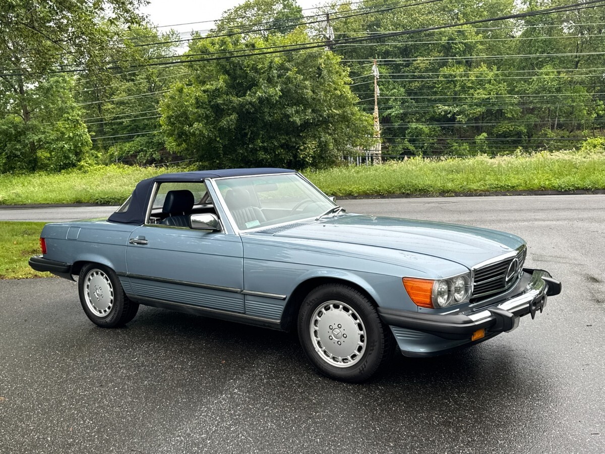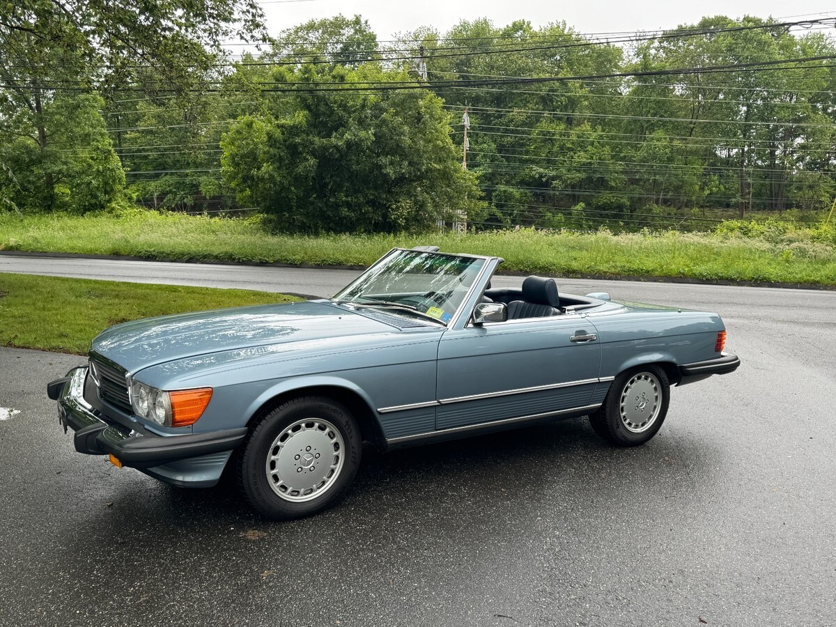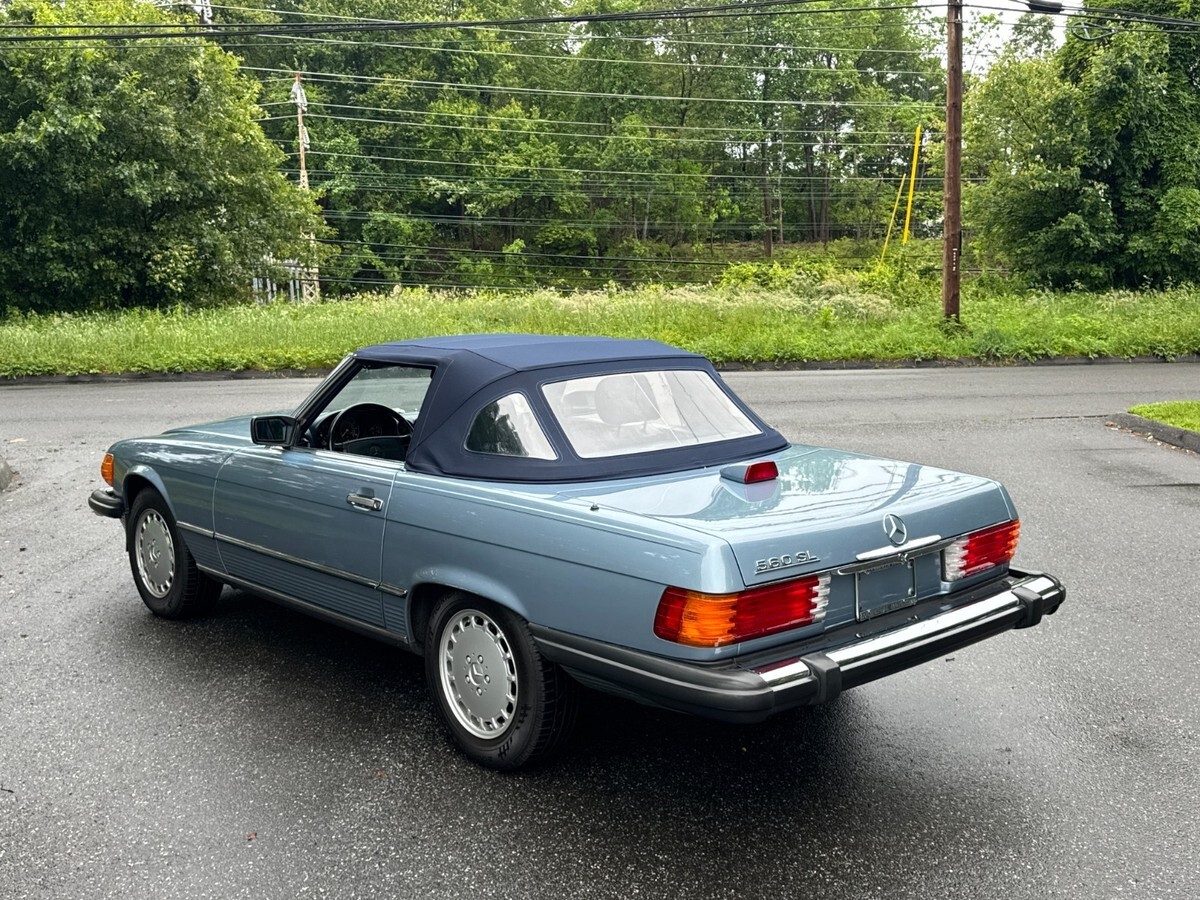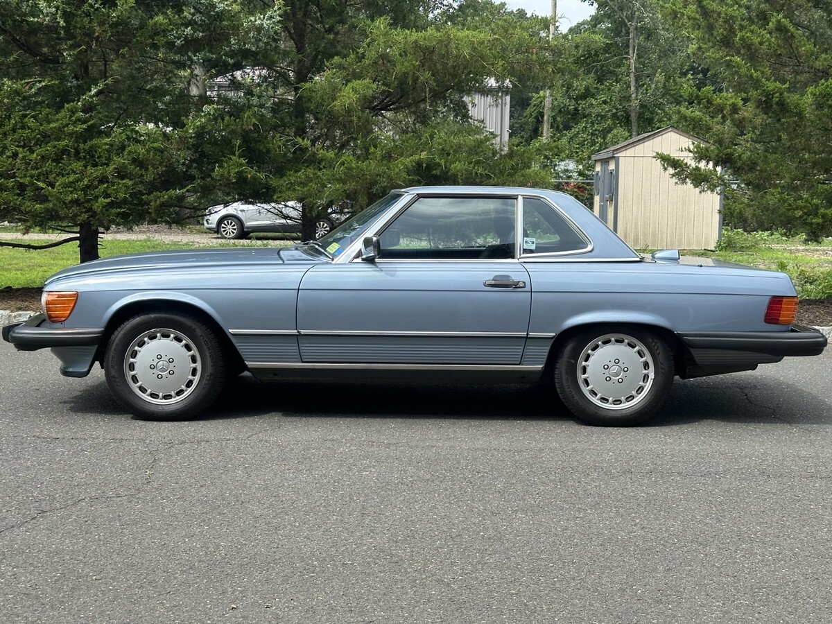 This is a beautiful and exceptionally well maintained one-owner 560 SL with its original soft top in perfect condition and original hard top as well.This is a one owner car sold new in Connecticut by Continental Motors and driven sparingly by its one and only owner. The car presents in nearly perfect condition with only slight wear noted on the driver's seat. Everything is original with the exception of a careful installation of a later radio but the original head unit was retained and is in perfect working order and condition.The paint is beautiful with only very slight crazing visible under very bright light which is the case with virtually all of the original paint SL roadsters wearing lighter metallic paint. You can barely see it in a couple of the detail photos. Very very hard to see in person. There is also a very small light scratch visible in the photos of the left rear lip of the wheel well. The gaps and panel fit are perfect and the original soft top is also perfect with the original Mercedes markings only present on original tops. It has 37,480 actual documented miles at the time of this listing and has just been safety inspected as well. I've had the car inspected and put about 100 miles on it since. It needs nothing! The chrome and rubber pieces are like factory new and the wheels are perfect with no curb rash or wear. The tires are brand new with under 300 miles on them.The A/C has been converted to R134A and blows cold. The interior is beautiful and totally original. The leather is soft with no major signs of wear and the carpeting is also excellent appearing new. All of the wood is original and excellent and all of the controls and gauges work as new.The engine bay is totally original with all work done that these cars require. It starts, runs and drives exceptionally well. The suspension and brakes are fully maintained and perform as Mercedes-Benz intended. The underside is perfect with original paint and factory materials still there.Overall, this car is ready to go anywhere comfortably and safely. It is an incredibly well preserved & maintained low mile original SL Roadster. I have many more pictures available.eBay attached an 'Autocheck' report which I think is their version of the Carfax. If you cannot see it, please let me know and I can send it to you.This car is coming from its original and now elderly owner and is on its original 1986 CT title. Please feel free to reach out with any questions or inspection requests. I also have extensive service history which I am happy to email to anyone at their request, just click the contact seller link or call 860-883-3998.