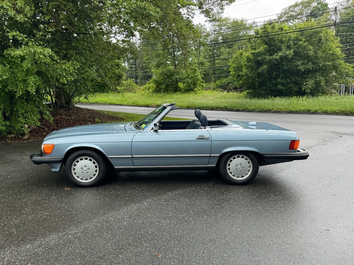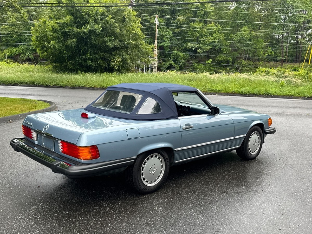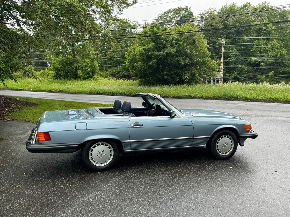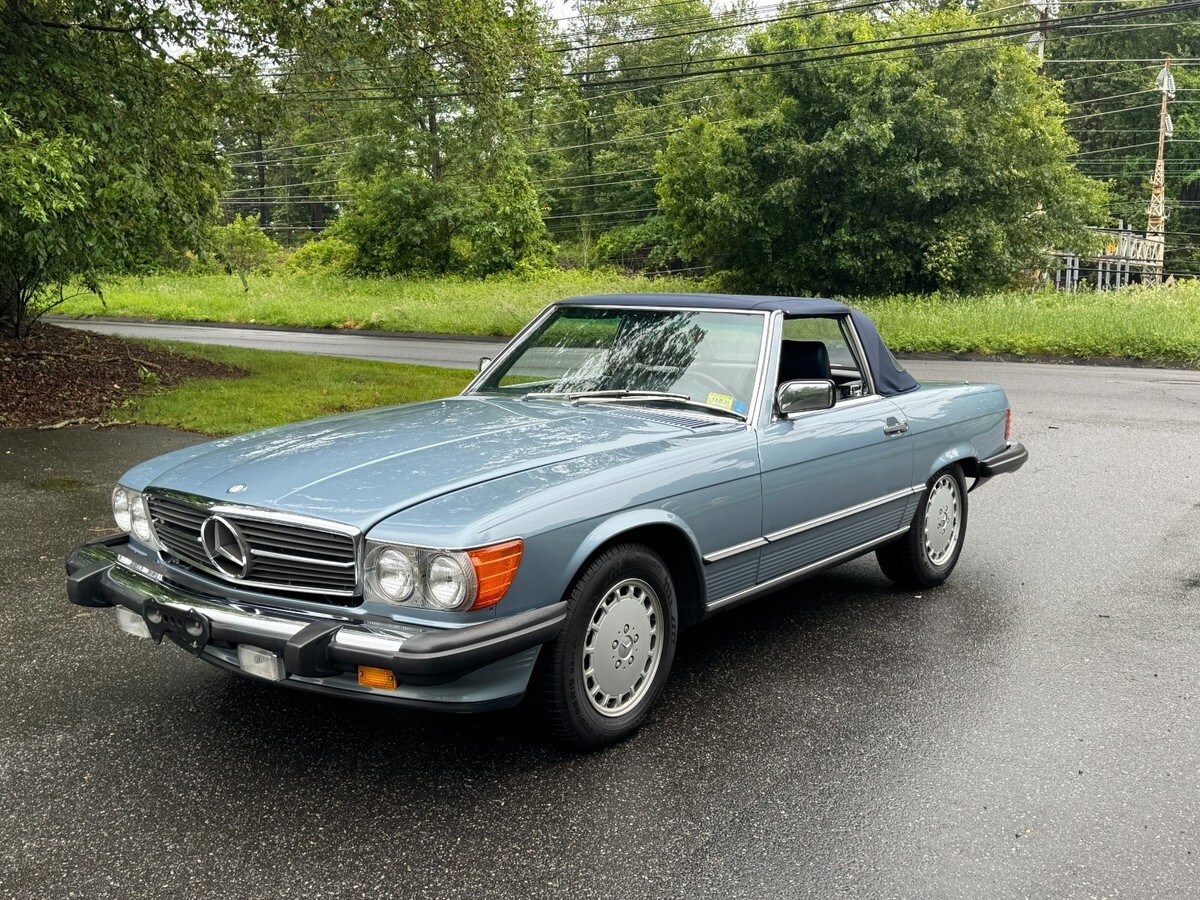This is a beautiful and exceptionally well maintained one-owner 560 SL with its original soft top in perfect condition and original hard top as well.This is a one owner car sold new in Connecticut by Continental Motors and driven sparingly by its one and only owner. The car presents in nearly perfect condition with only slight wear noted on the driver's seat. Everything is original with the exception of a careful installation of a later radio but the original head unit was retained and is in perfect working order and condition.The paint is beautiful with only very slight crazing visible under very bright light which is the case with virtually all of the original paint SL roadsters wearing lighter metallic paint. You can barely see it in a couple of the detail photos. Very very hard to see in person. There is also a very small light scratch visible in the photos of the left rear lip of the wheel well. The gaps and panel fit are perfect and the original soft top is also perfect with the original Mercedes markings only present on original tops. It has 37,480 actual documented miles at the time of this listing and has just been safety inspected as well. I've had the car inspected and put about 100 miles on it since. It needs nothing! The chrome and rubber pieces are like factory new and the wheels are perfect with no curb rash or wear. The tires are brand new with under 300 miles on them.The A/C has been converted to R134A and blows cold. The interior is beautiful and totally original. The leather is soft with no major signs of wear and the carpeting is also excellent appearing new. All of the wood is original and excellent and all of the controls and gauges work as new.The engine bay is totally original with all work done that these cars require. It starts, runs and drives exceptionally well. The suspension and brakes are fully maintained and perform as Mercedes-Benz intended. The underside is perfect with original paint and factory materials still there.Overall, this car is ready to go anywhere comfortably and safely. It is an incredibly well preserved & maintained low mile original SL Roadster. I have many more pictures available.eBay attached an 'Autocheck' report which I think is their version of the Carfax. If you cannot see it, please let me know and I can send it to you.This car is coming from its original and now elderly owner and is on its original 1986 CT title. Please feel free to reach out with any questions or inspection requests. I also have extensive service history which I am happy to email to anyone at their request, just click the contact seller link or call 860-883-3998.