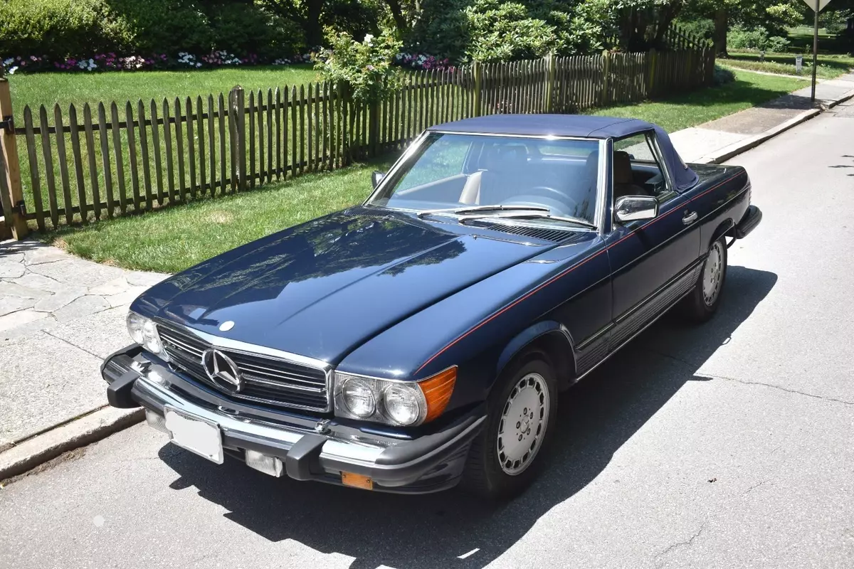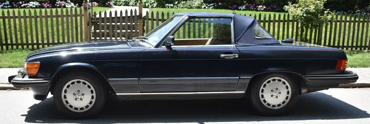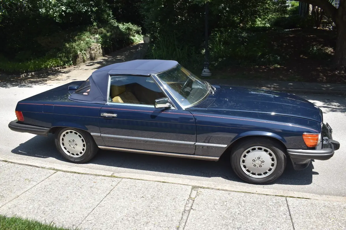 [isdntekvideo]DESCRIPTION: 1987 Mercedes-Benz 560 SL Roadster in midnight blue metallic with tan leather interior. The Benz is being sold by a private party who are the second owners and purchased the car in 1994. It was driven by an adult for all its life, well maintained, and garage kept.