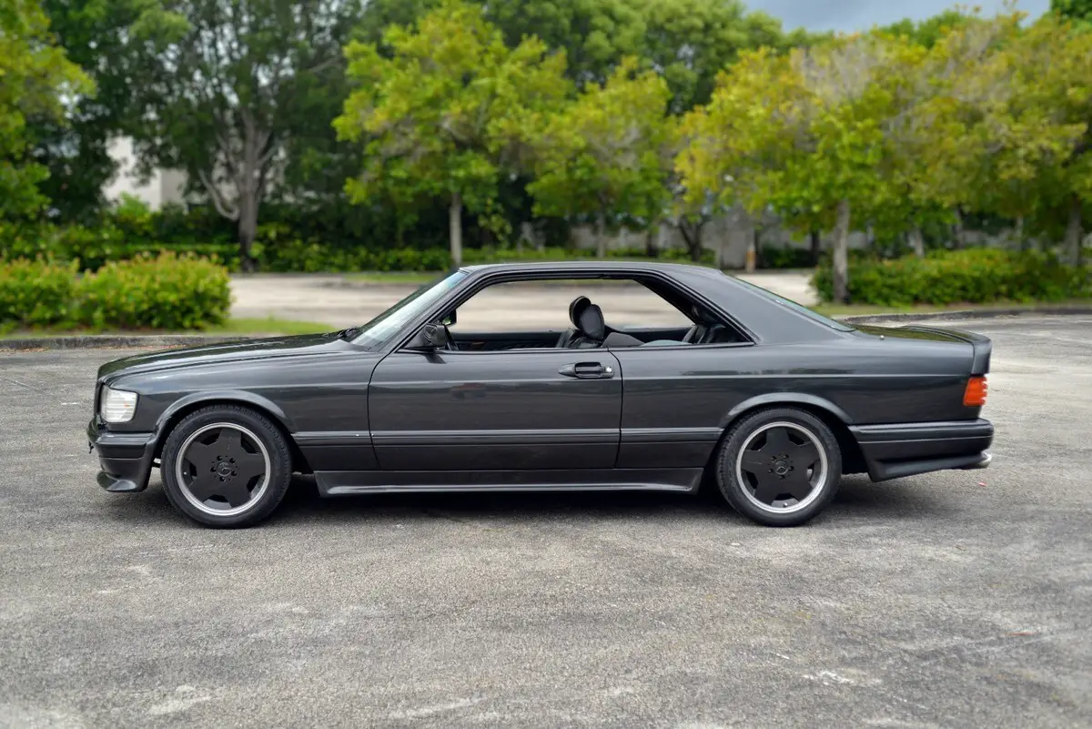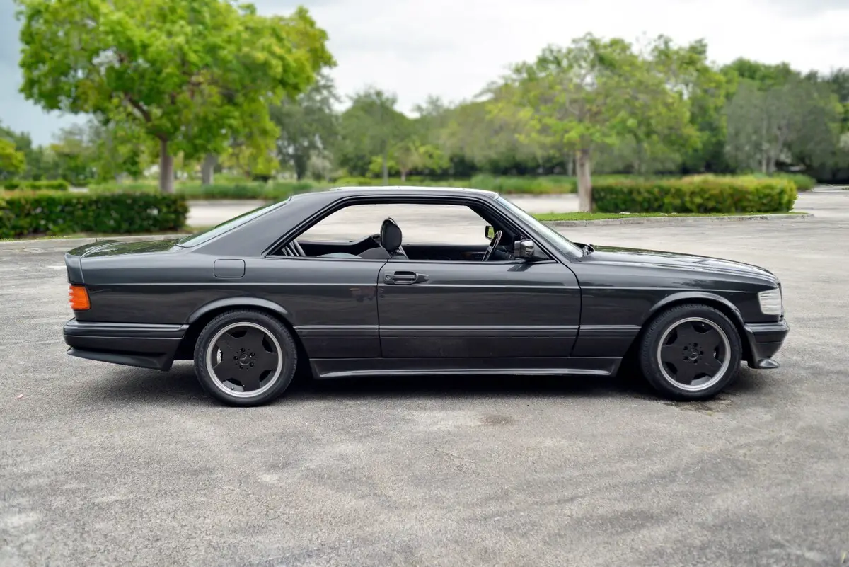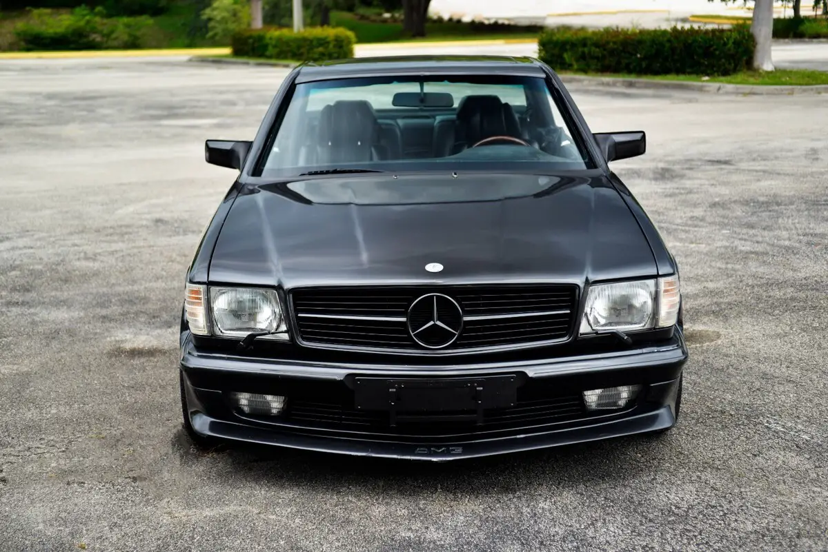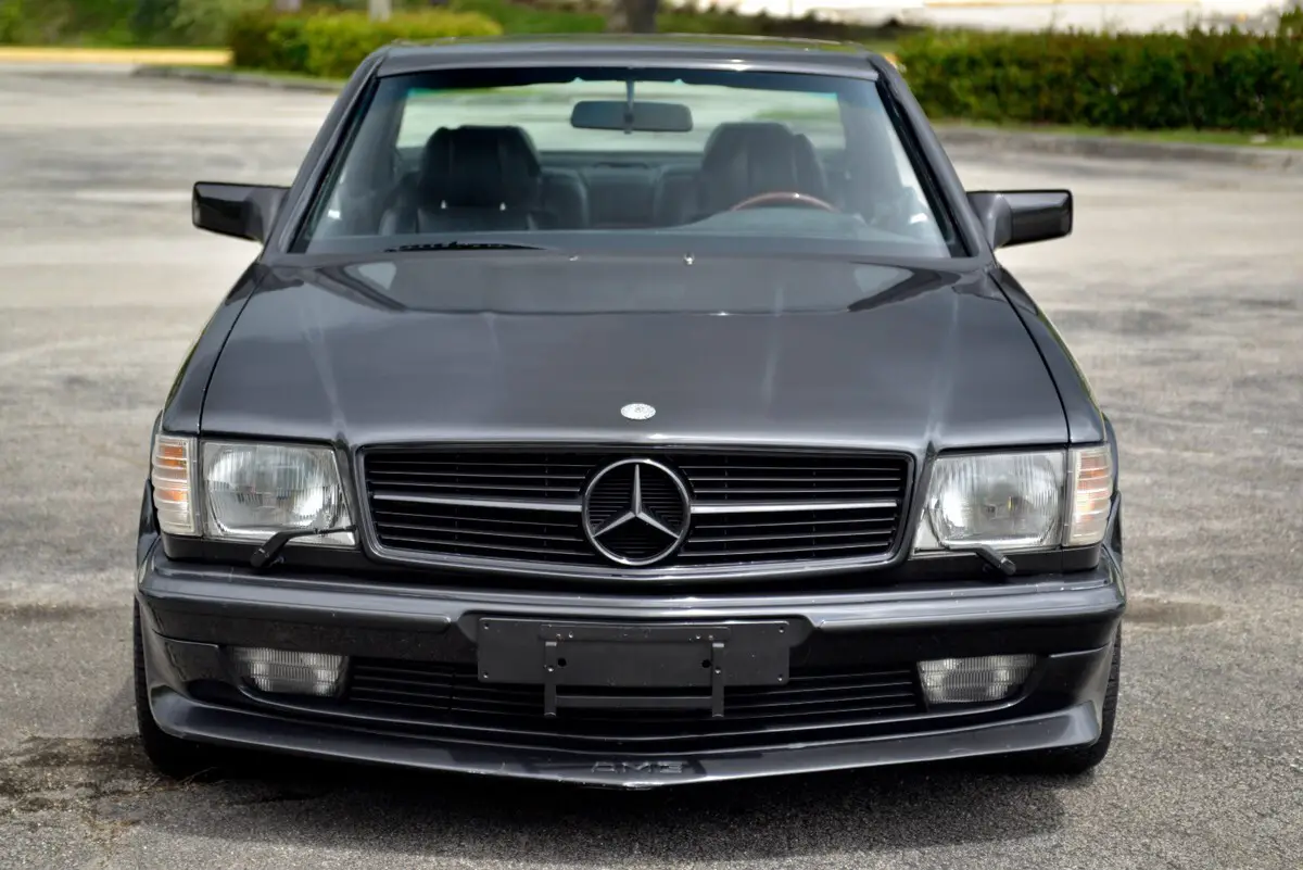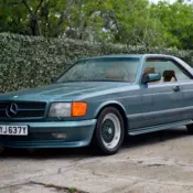 Available now this amazing German Market Mercedes-Benz 560SEC finished in Blue Black Metallic (199U) over black leather (261) and equipped with pre-merger AMG kit.